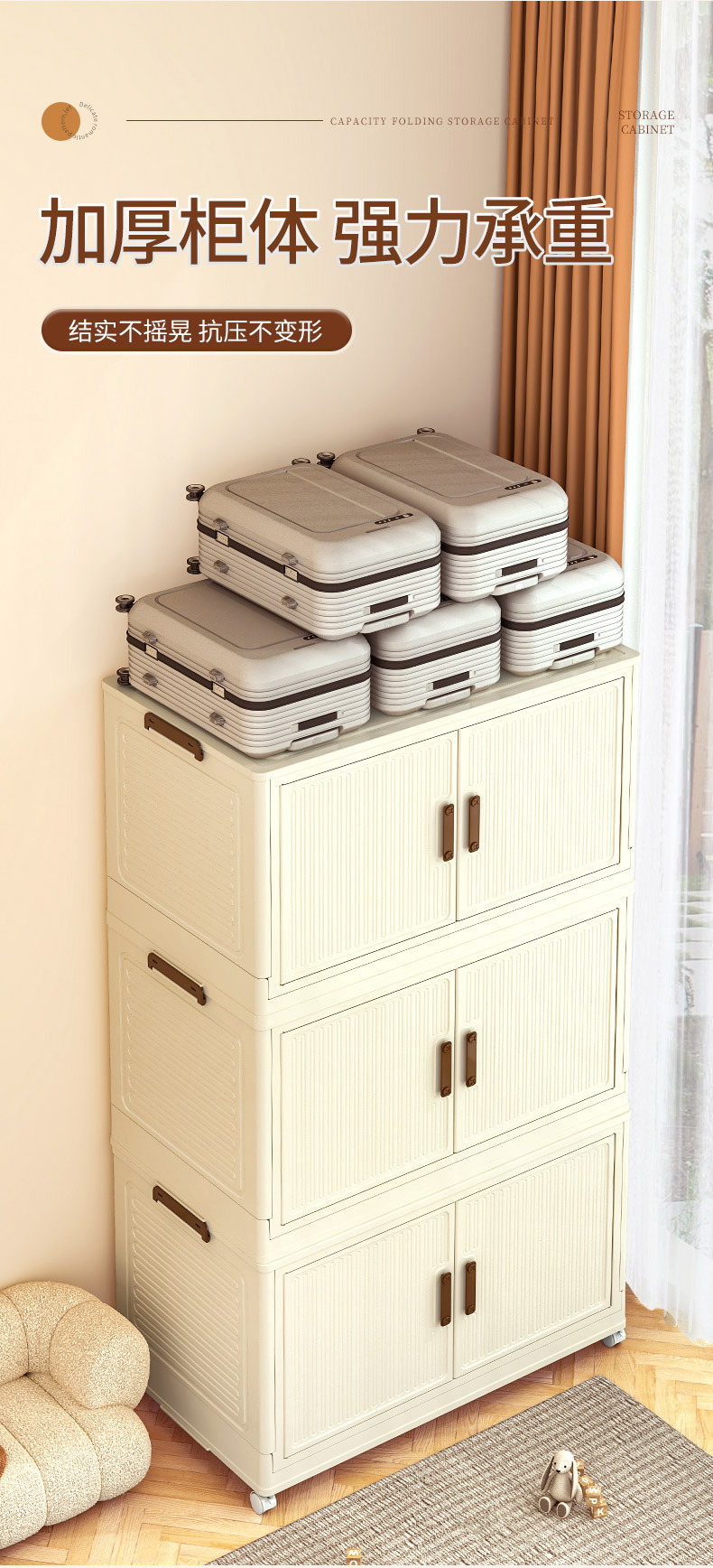 • 55 접이식 저장 캐비닛 3 층-크림 컬러 도어 패널