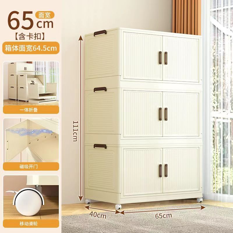 • 65 접이식 저장 캐비닛 3 층 크림 도어