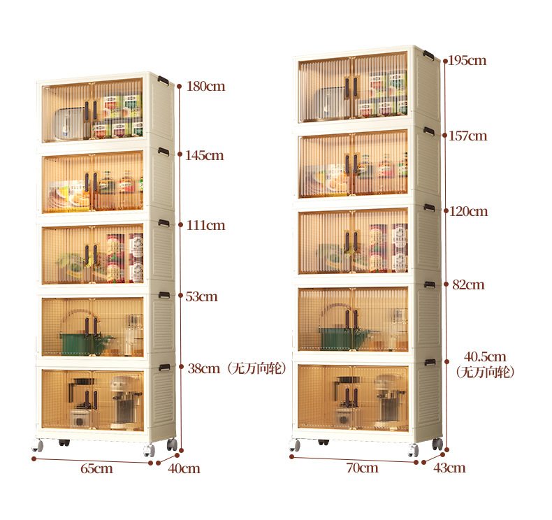 • 65 접이식 저장 캐비닛 1 층-투명 컬러 도어 패널-휠 없음