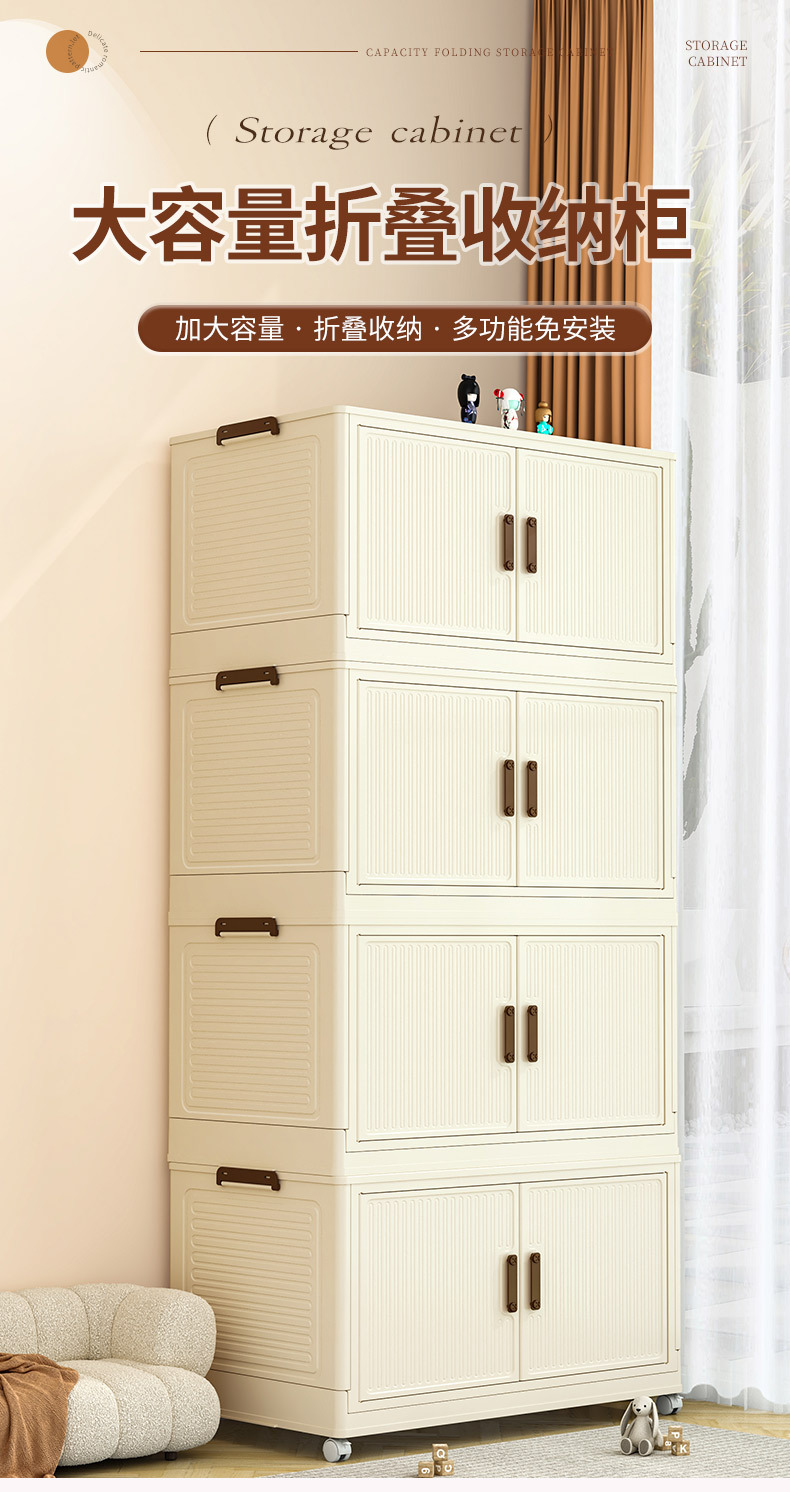 • 60 접이식 저장 캐비닛 4 층-크림 컬러 도어 패널