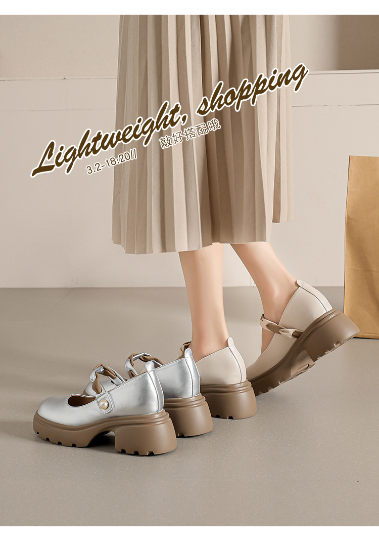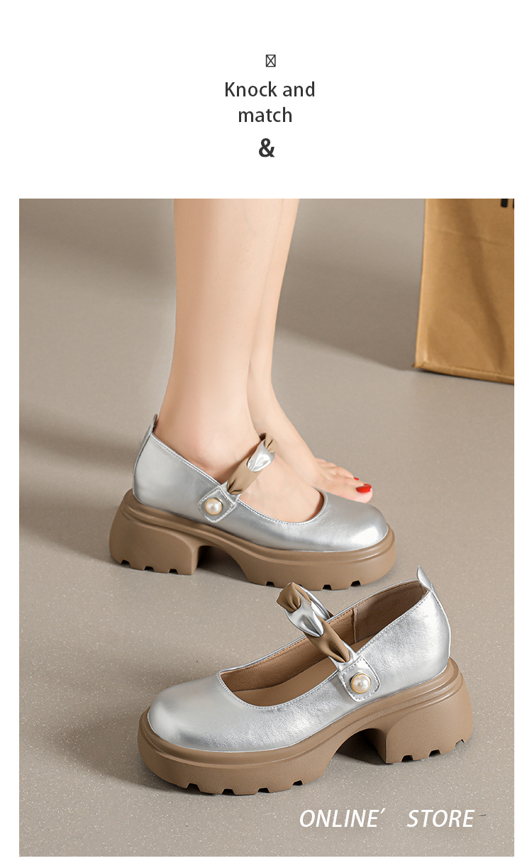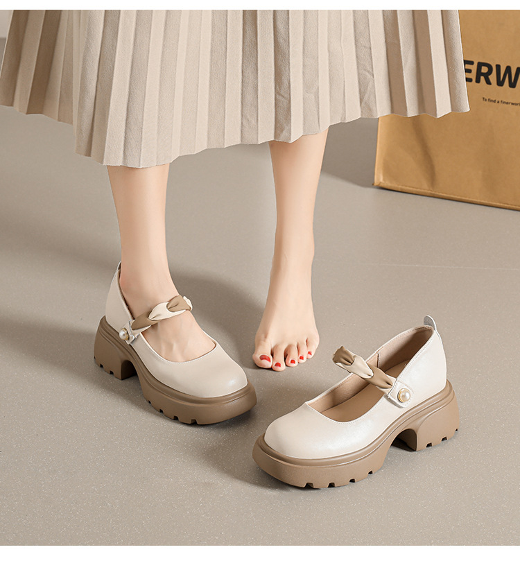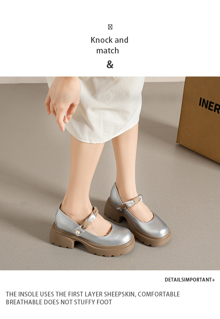 작은 여성 신발을위한 메리 제인의 두꺼운 밑창 8cm 하이힐 가죽 신발스토어 가기