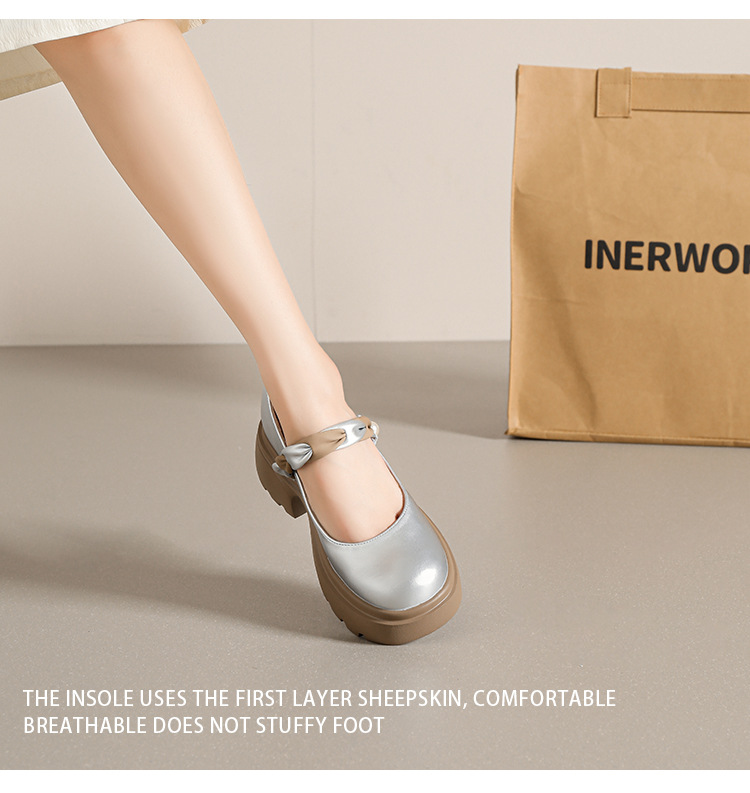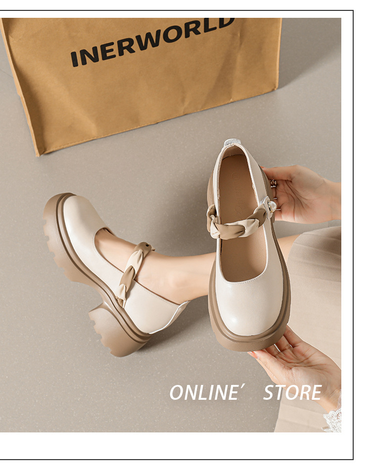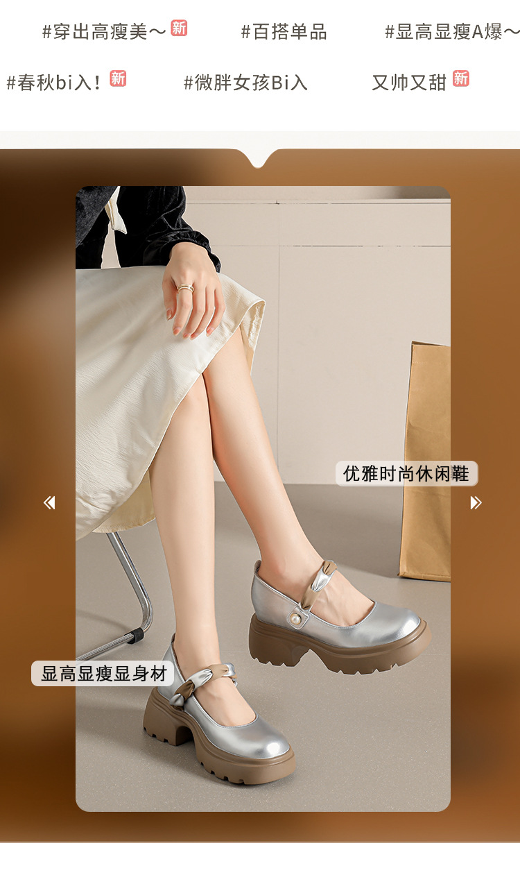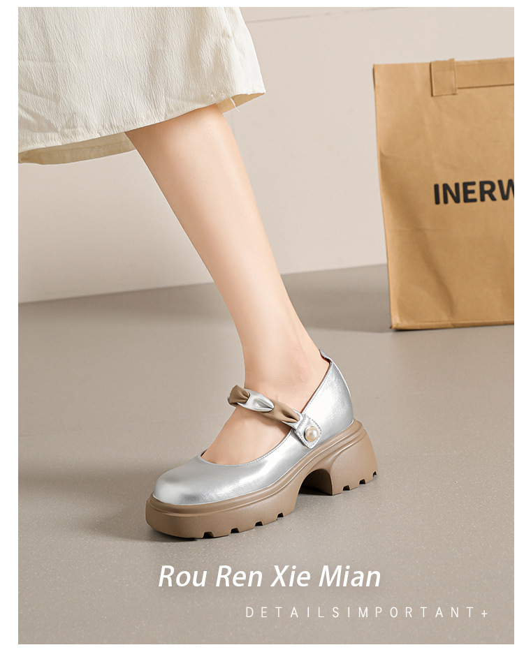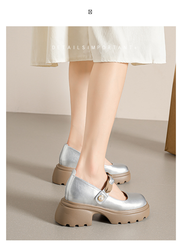 작은 여성 신발을위한 메리 제인의 두꺼운 밑창 8cm 하이힐 가죽 신발스토어 가기