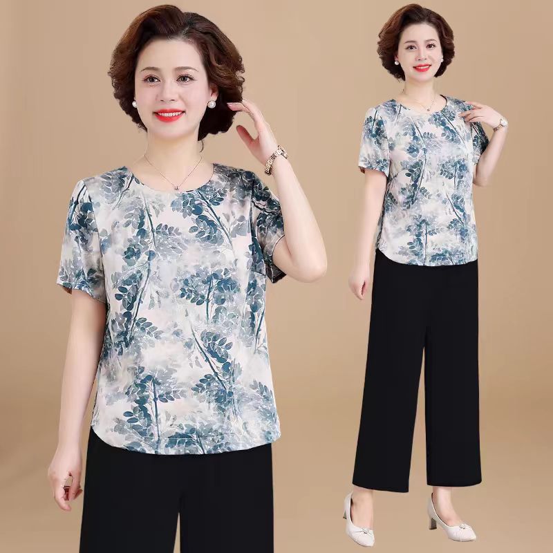 2025 여름 새로운 기질 작은 셔츠 꽃 프린트 탑 여성 문학 복고풍 엄마 탑 티셔츠 여성