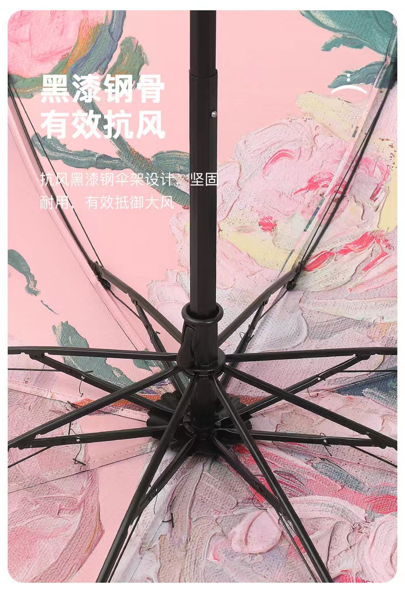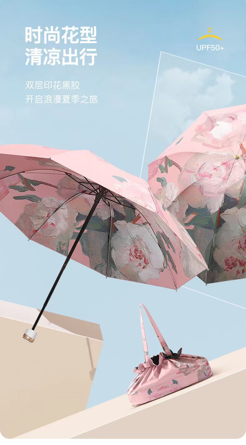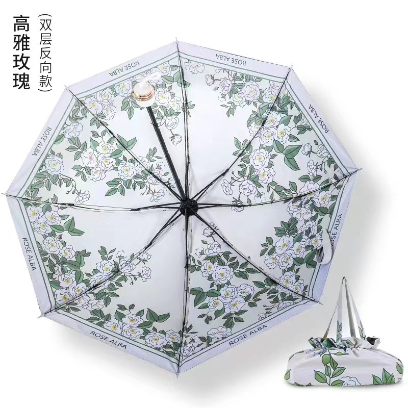 다섯 접은 검은 고무 두 배 층 태양 우산 태양 보호 UV 보호 여성 유화 우산 접히는 이중 사용 양산 역풍 우산스토어 가기