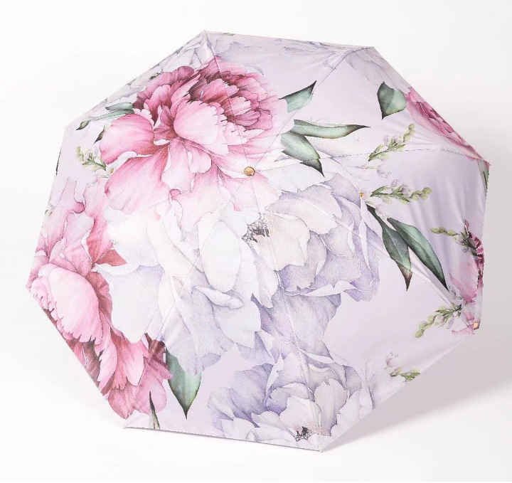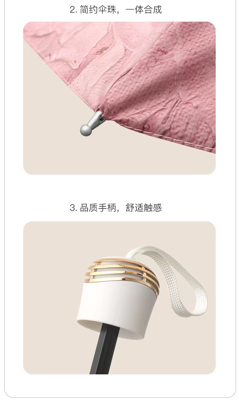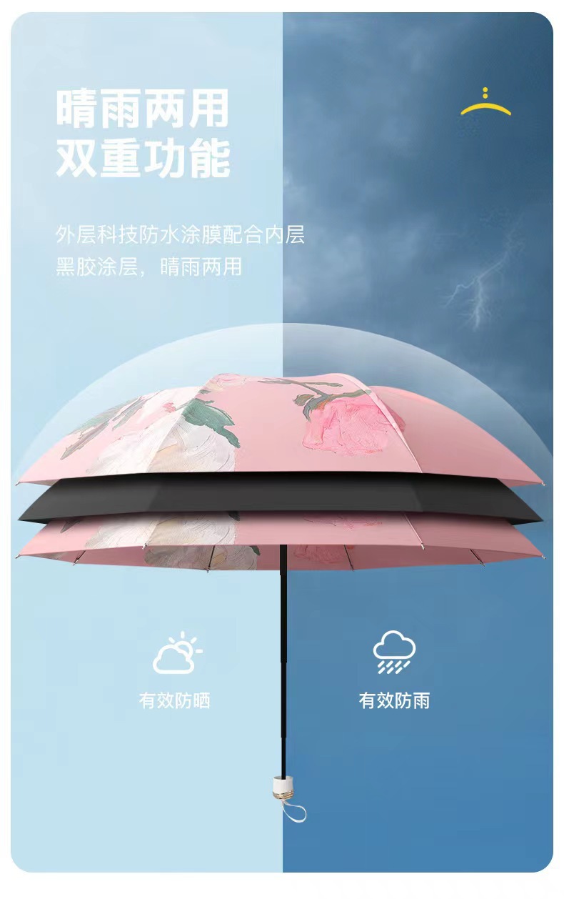 다섯 접은 검은 고무 두 배 층 태양 우산 태양 보호 UV 보호 여성 유화 우산 접히는 이중 사용 양산 역풍 우산