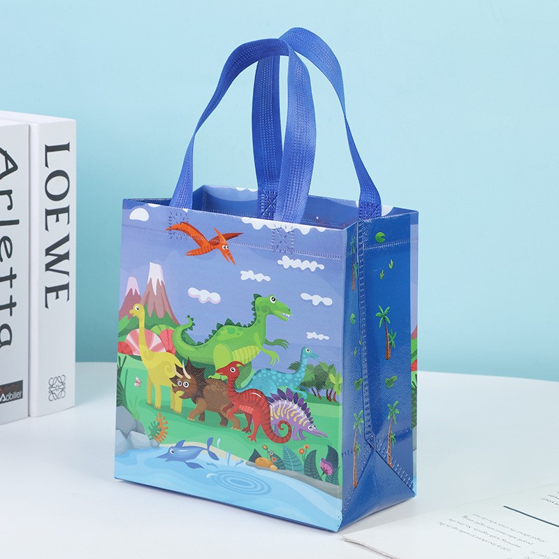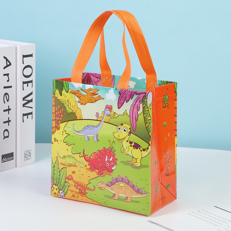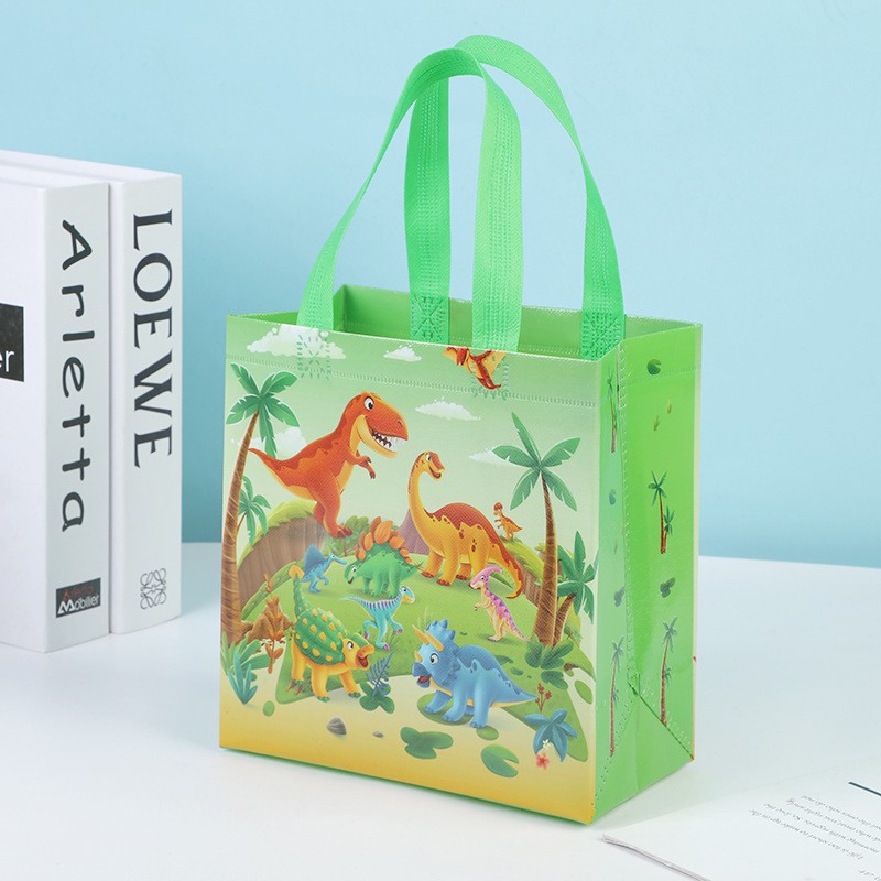 국경 간 뜨거운 판매 어린이 만화 공룡 선물 가방 접는 토트 백 쇼핑 백 포장 부직포 방수 가방
