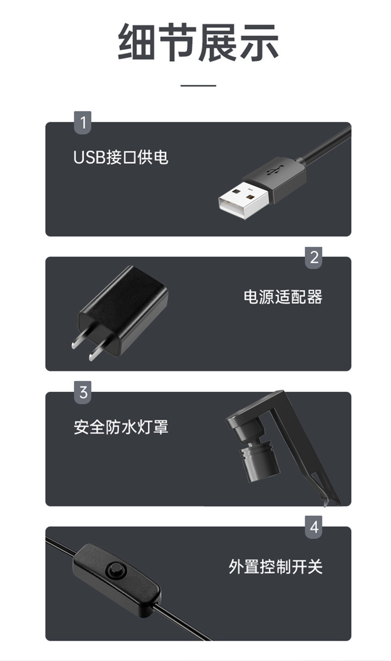 • 7W 백색광 USB(플러그는 포함되어 있지 않음)