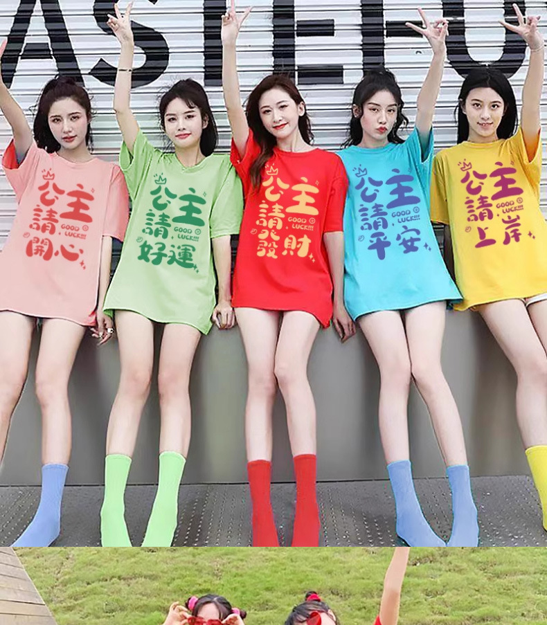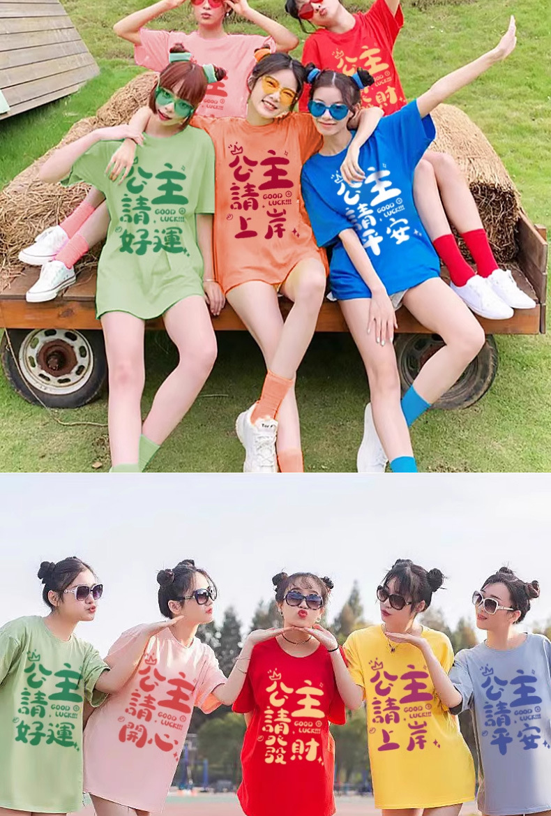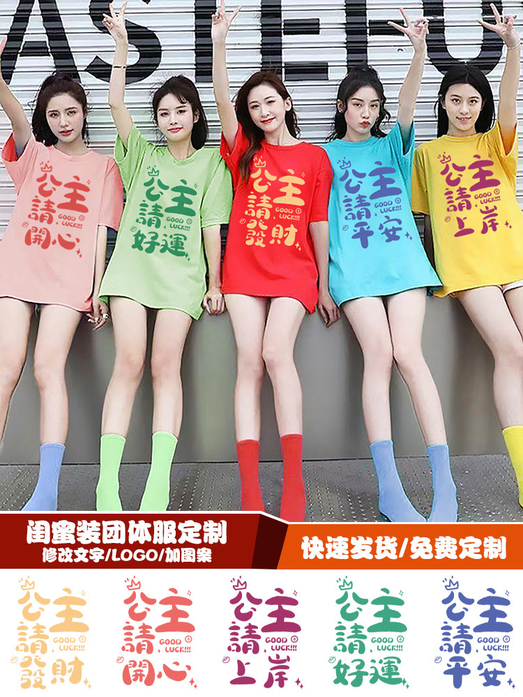 컬러 티셔츠 여성 공주 행운의 짧은 소매 인쇄 그림 여름 새로운 자매 여자 친구 여행 신부 들러리 그룹 코트 조수