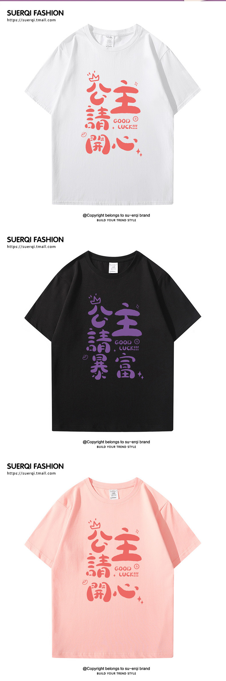 컬러 티셔츠 여성 공주 행운의 짧은 소매 인쇄 그림 여름 새로운 자매 여자 친구 여행 신부 들러리 그룹 코트 조수스토어 가기