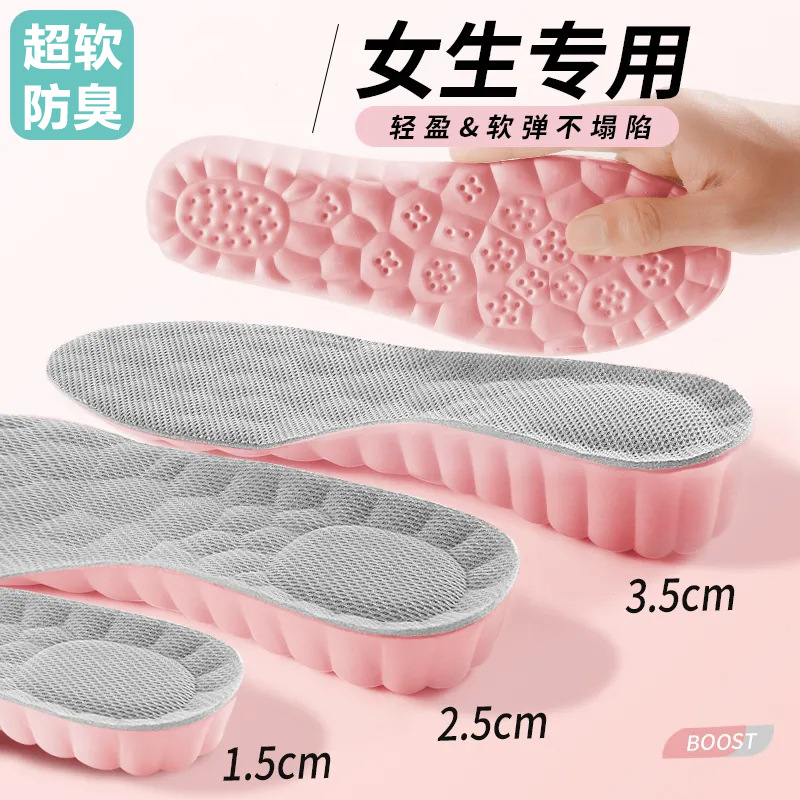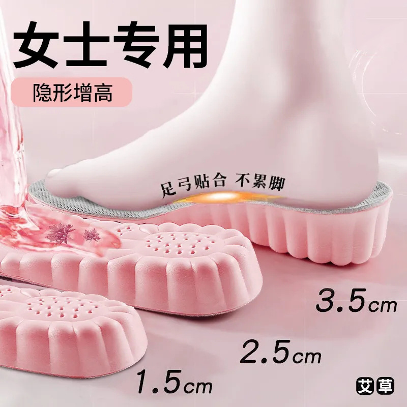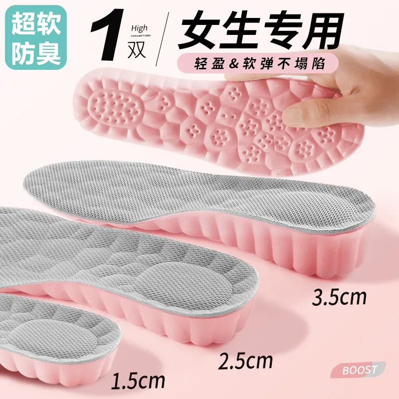 피곤하지 않은 여성을위한 높은 안창 눈에 띄지 않는 땀 흡수 탈취제 스포츠 충격 흡수 마틴 부츠 상승 아티팩트