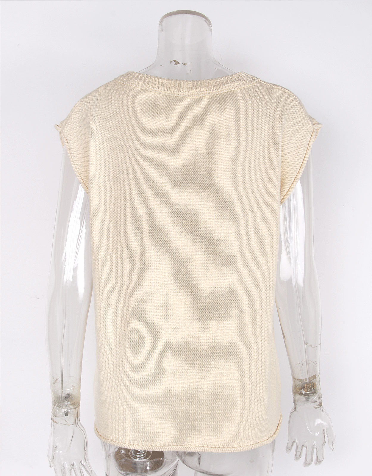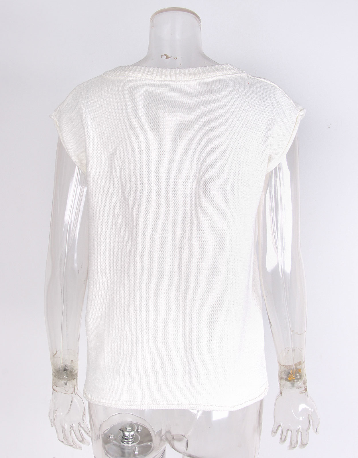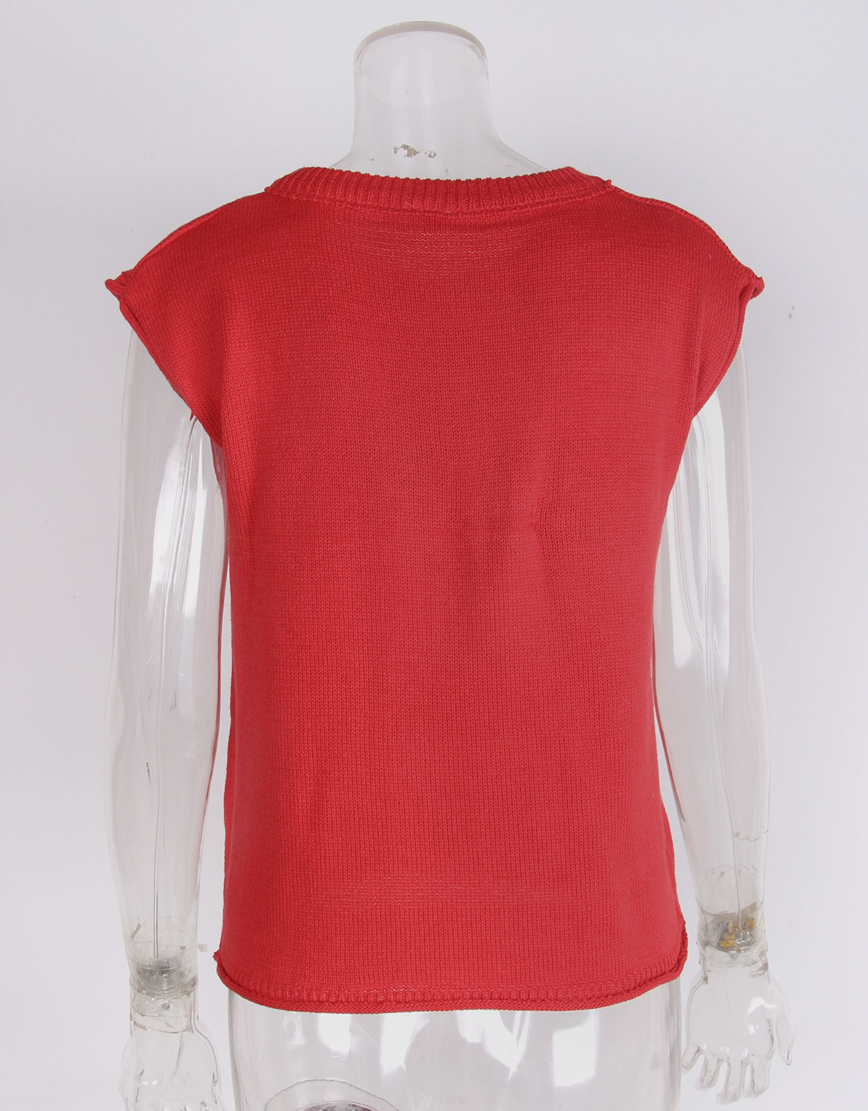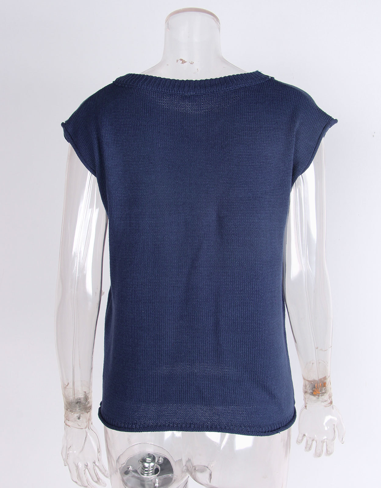가을 국경 아마존 유럽과 미국 베스트셀러 독립 기념일 승무원 목 국기 단색 스웨터 패션 반팔 스웨터 여성스토어 가기