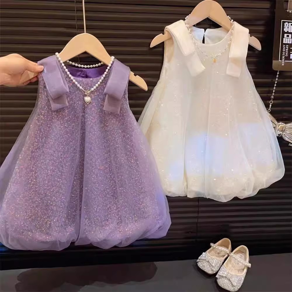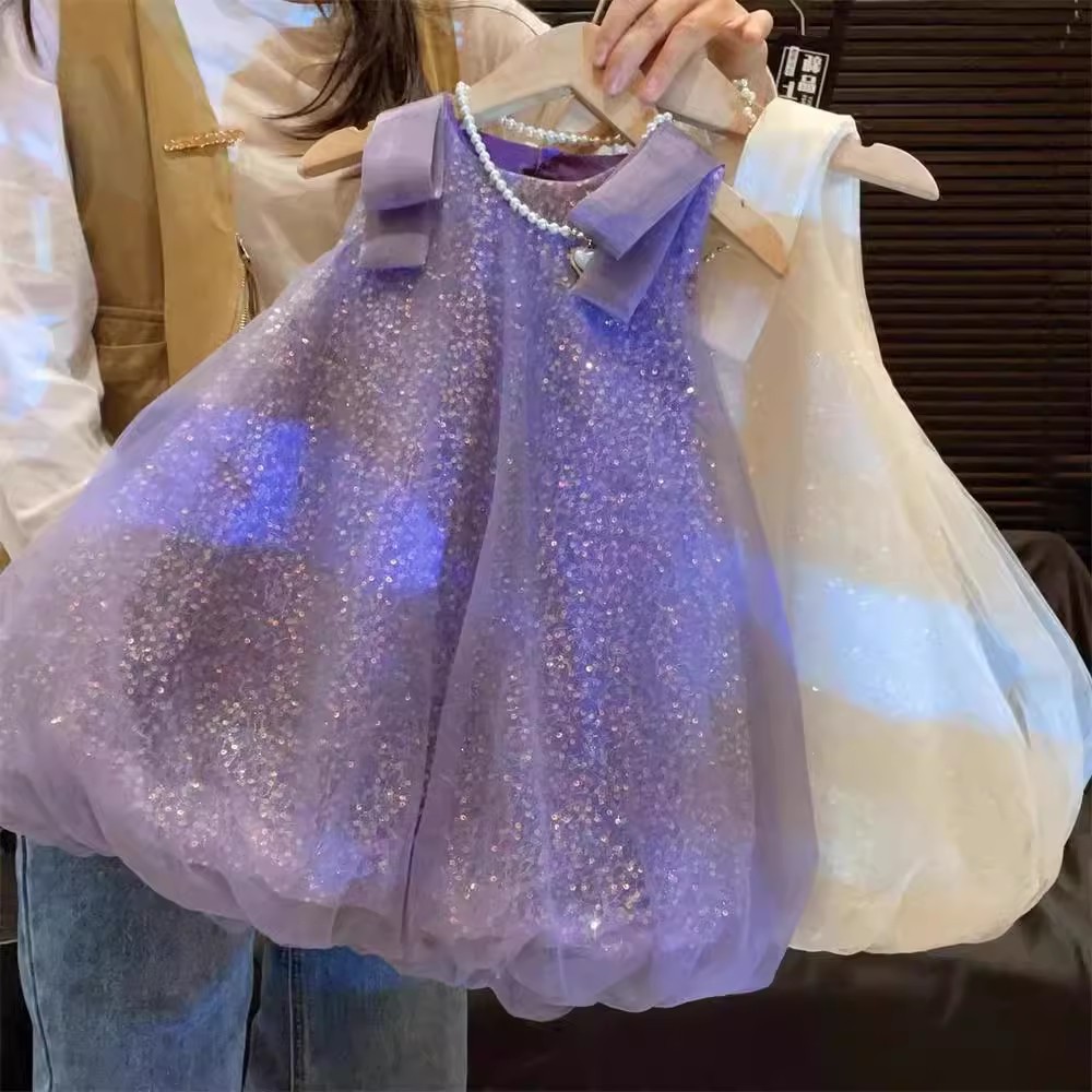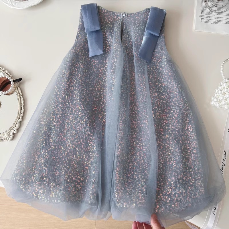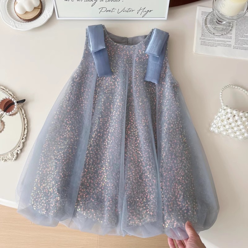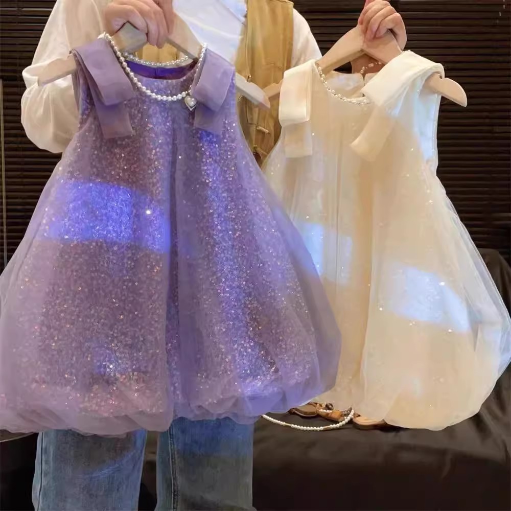 한국 스타일 여름 사이버 트렌디 한 원피스 소녀 스퀸 메쉬 빈 스커트 아기의 빛나는 슬링 어린이 스커트스토어 가기