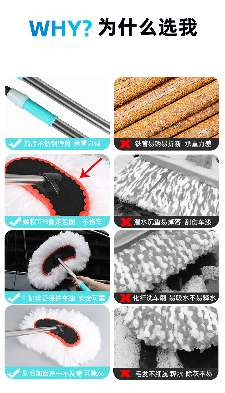 세차 걸레 긴 손잡이 텔레스코픽 브러시 자동차 브러시 부드러운 헤어 왁스 걸레 휴대용 개폐식 세차 도구