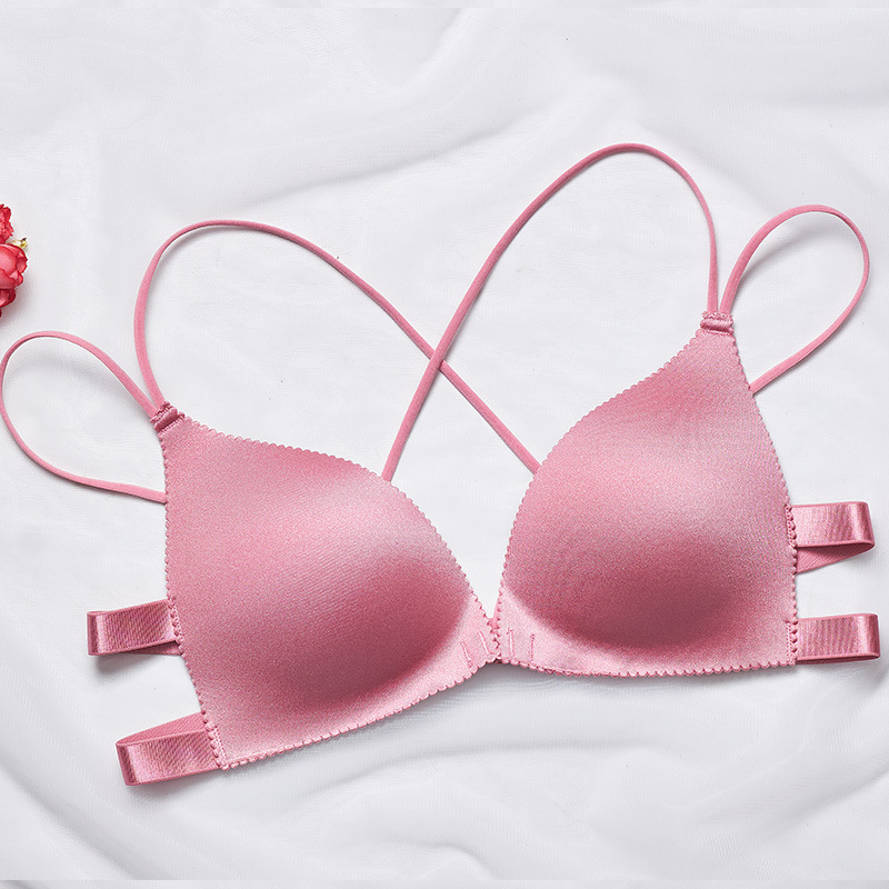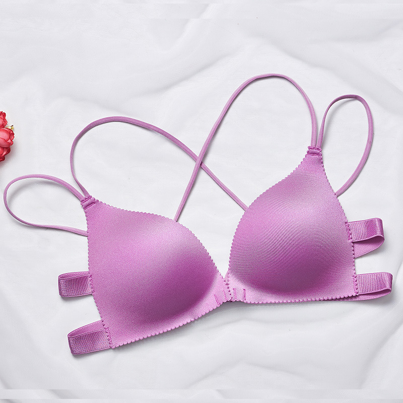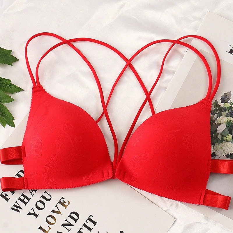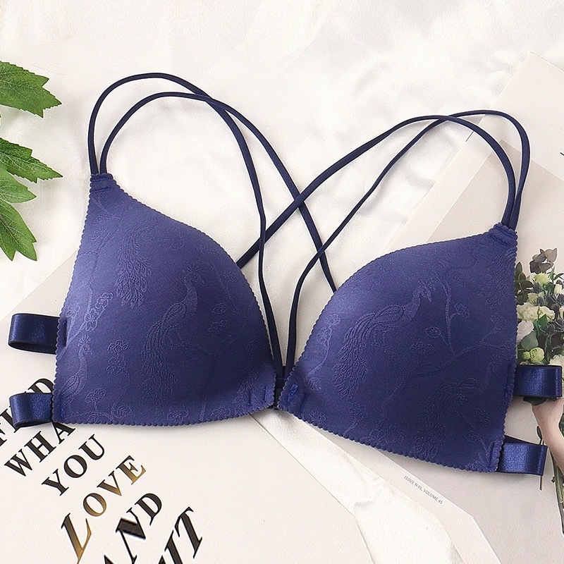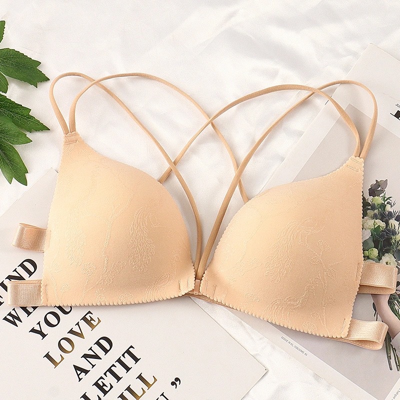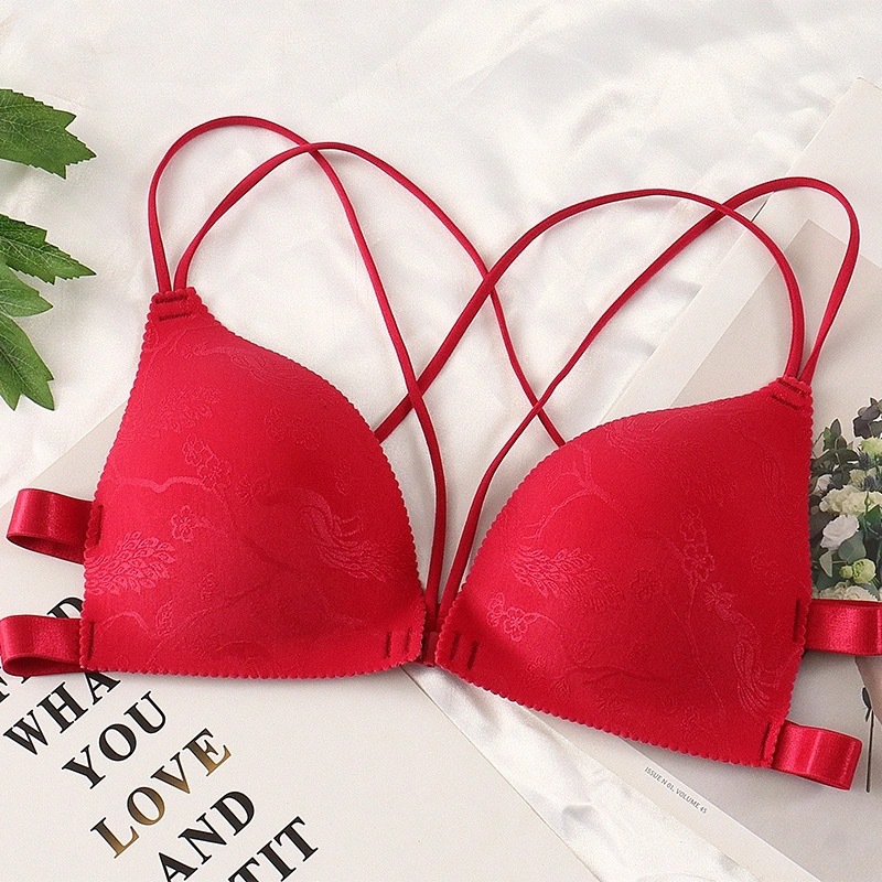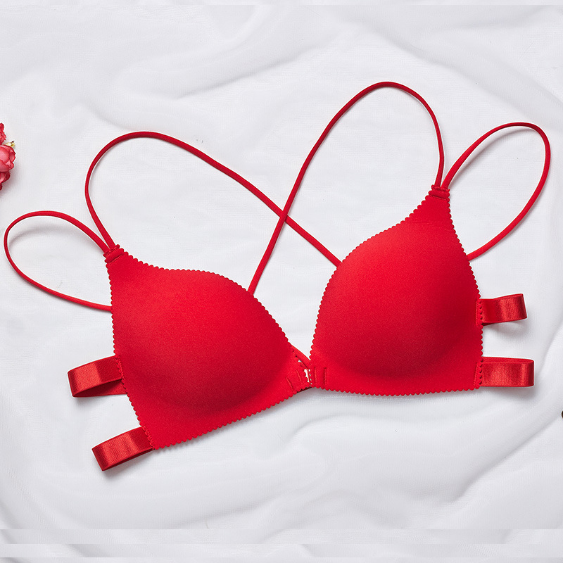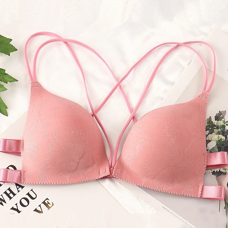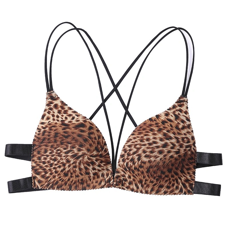 새로운 스타일 인쇄 전면 버클 속옷 여성용 시크릿 스틸 링 없음 작은 가슴 푸시 업 삼각형 컵 크로스 여성을위한 아름다운 등 섹시한 브래지어