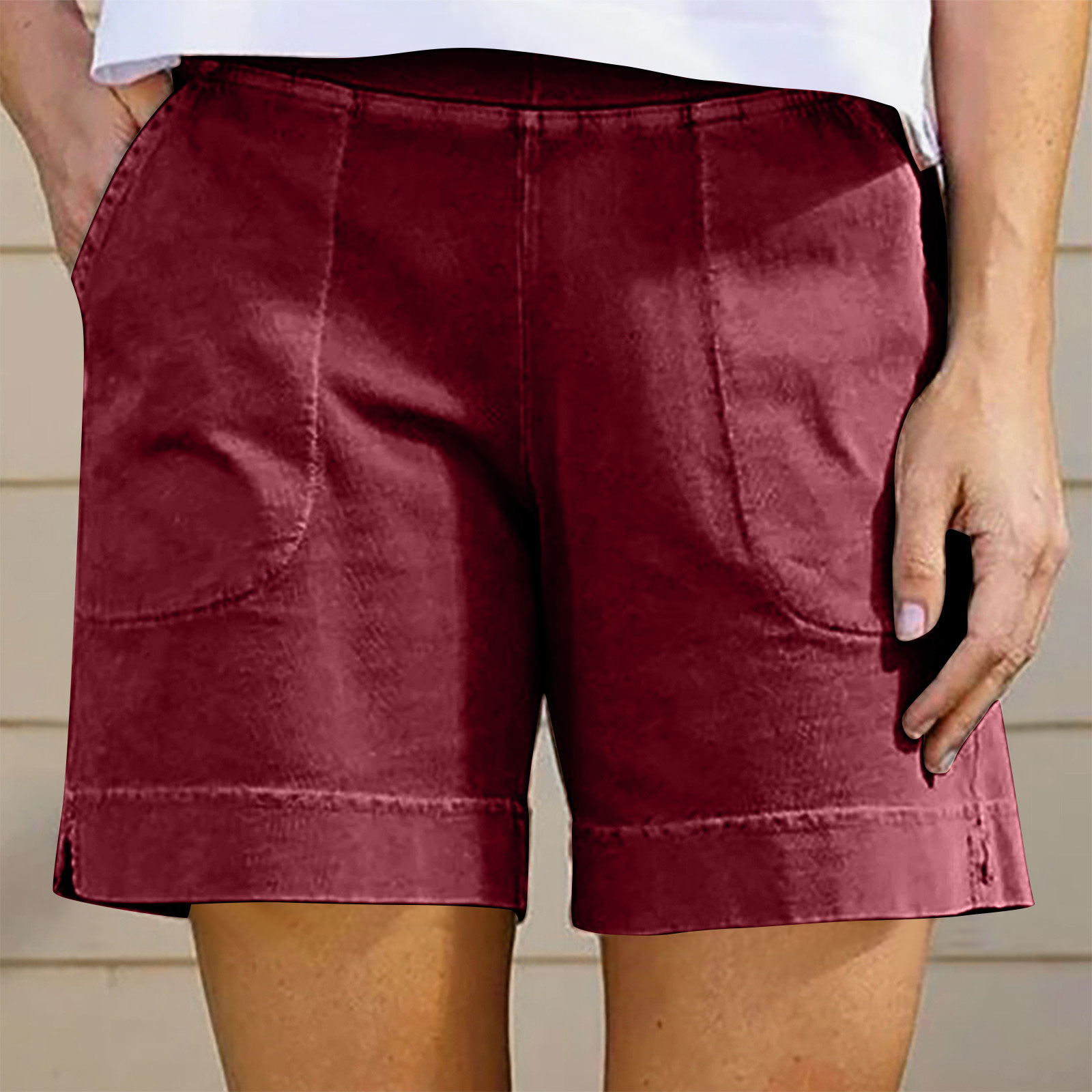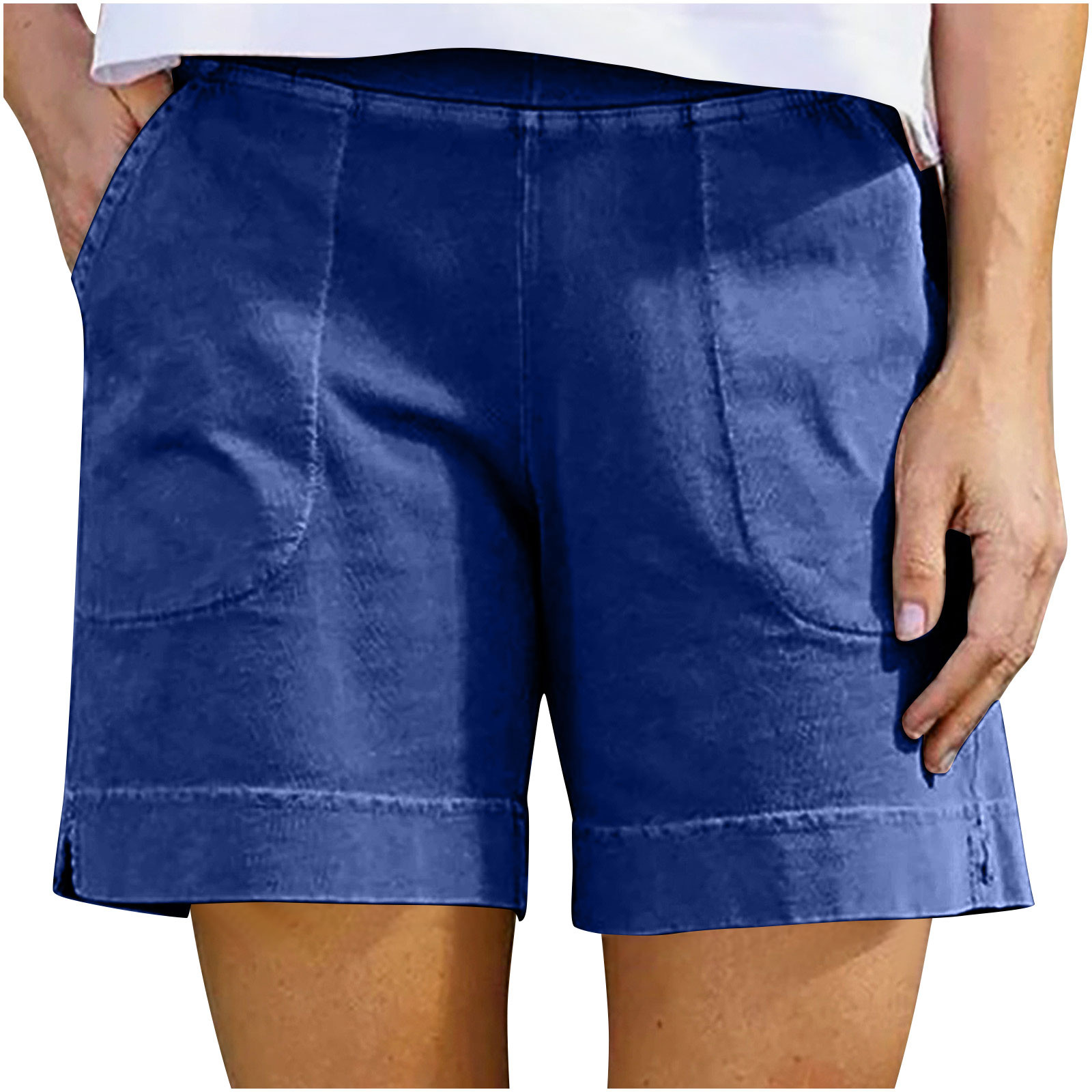 국경을 넘는 유럽과 미국의 아마존 여성의 2024 년 새로운 여름 솔리드 컬러 코튼 및 리넨 바지 여성용 포켓 캐주얼 반바지스토어 가기