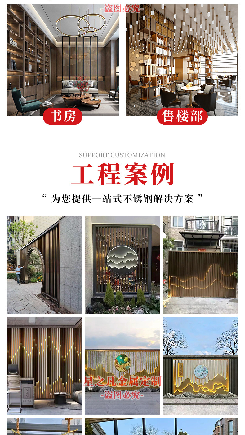 호텔 스테인레스 스틸 석가산 스크린 빌라 안뜰 금속 배경 벽 풍경 중공 칸막이 벽 맞춤 공급 공장스토어 가기