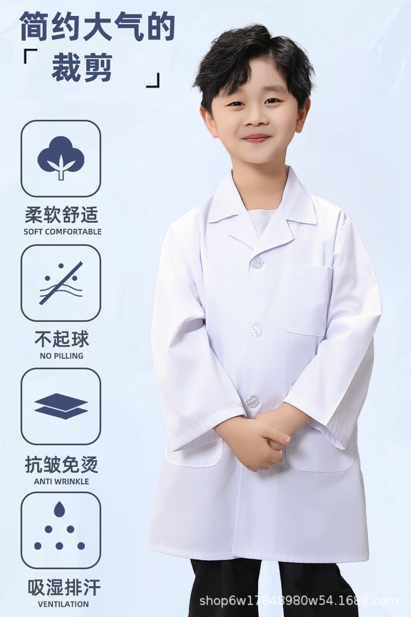국경 도매 성능 의류 어린이 의사 의류 간호사 의류 롤 플레잉 전문 실험실 의류 유치원 화이트 코트스토어 가기