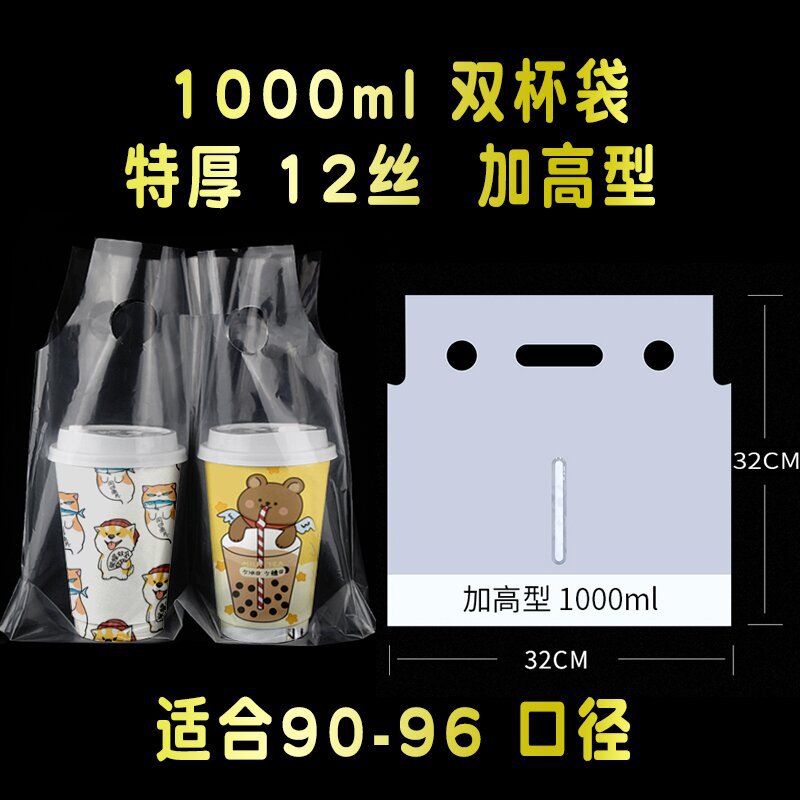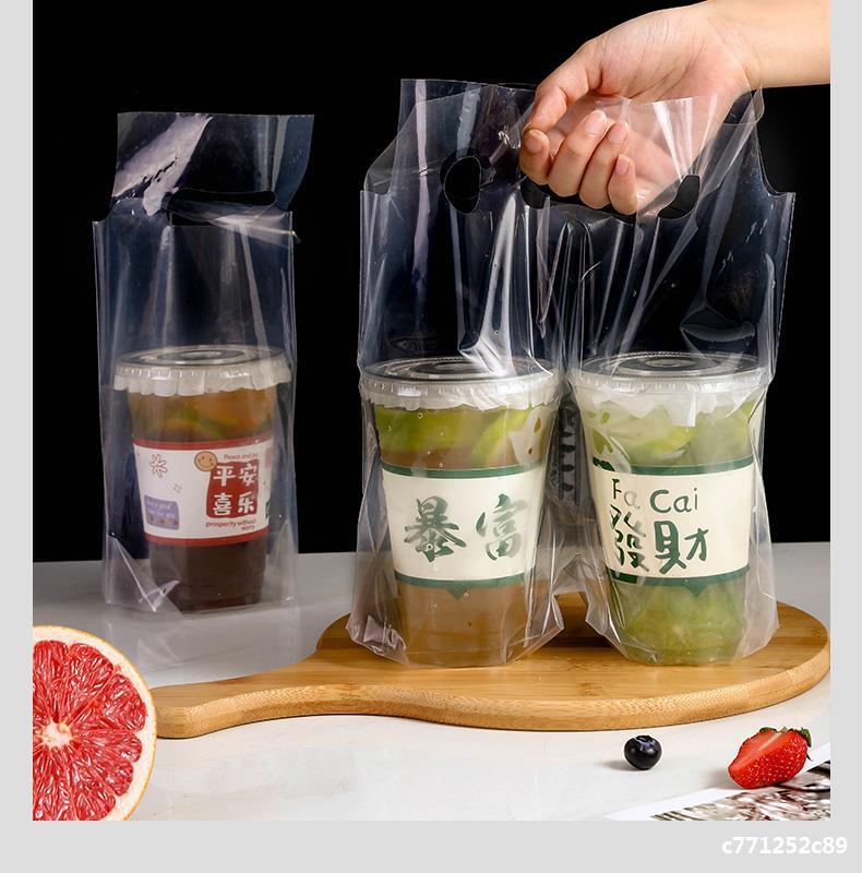 우유 차 가게 포장 가방 일회용 음료 커피 테이크 아웃 높은 투명 두꺼운 싱글 컵 더블 컵 핸드백