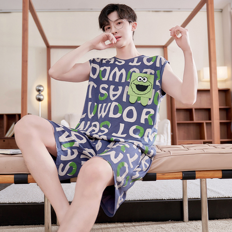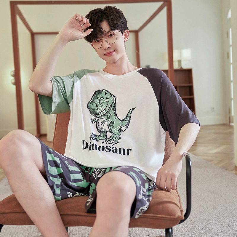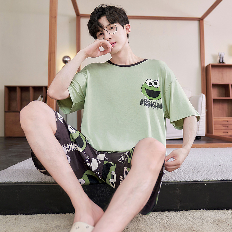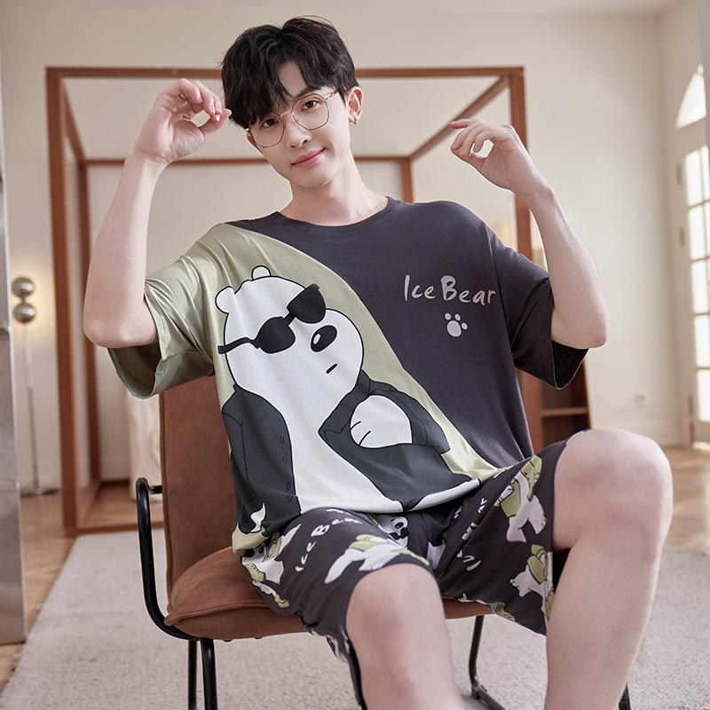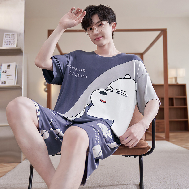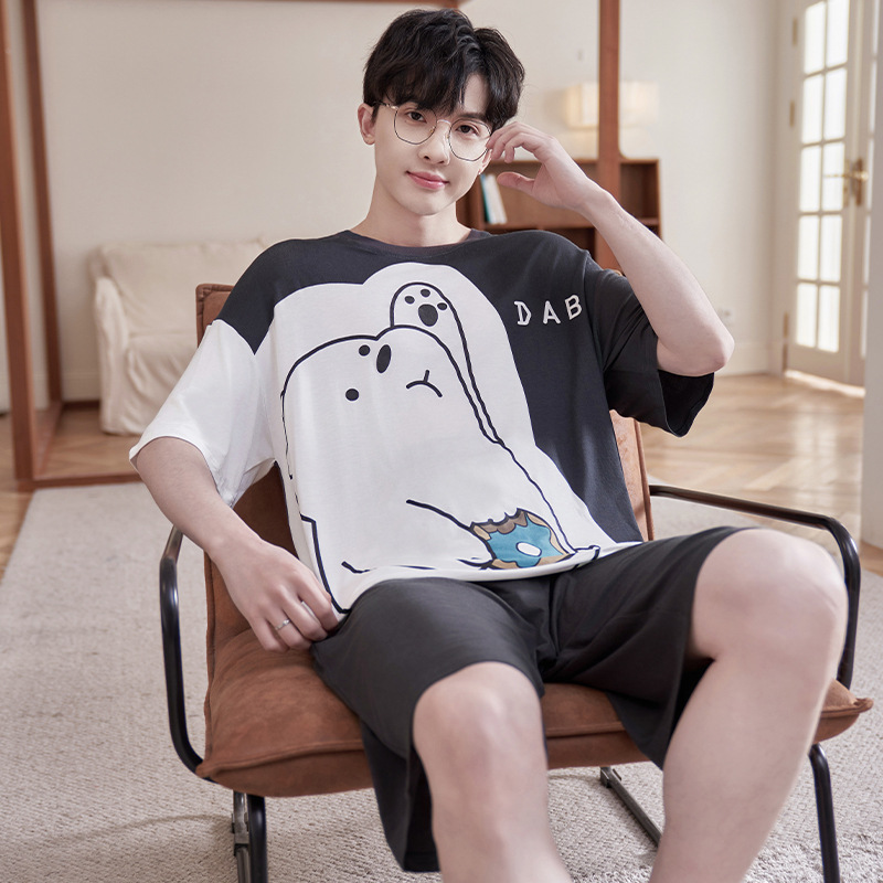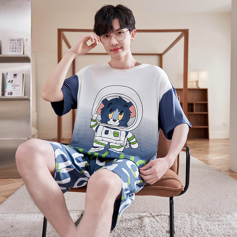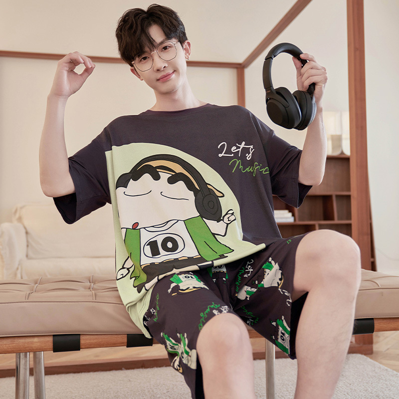 여름 잠옷 학생 만화 홈 옷 세트 소년 십대 느슨한 얇은 남자 큰 아이 여름 학생스토어 가기