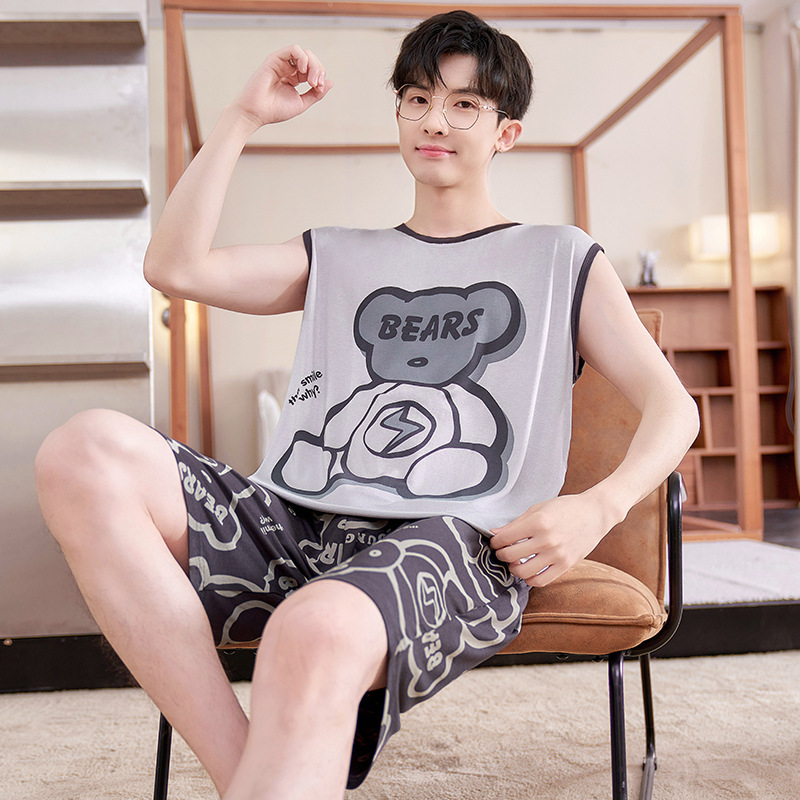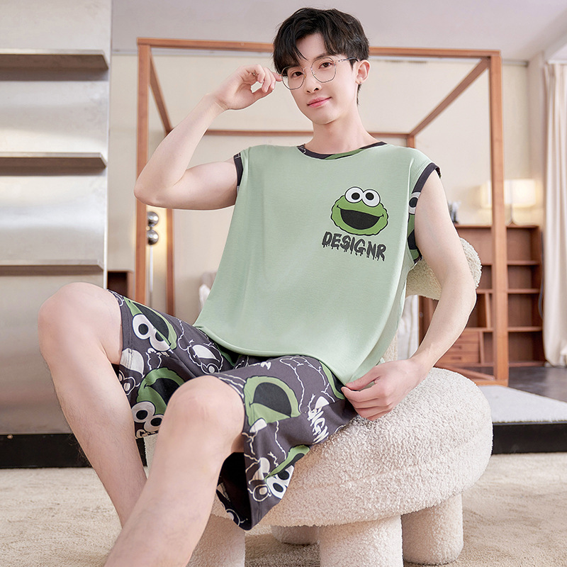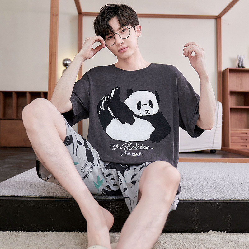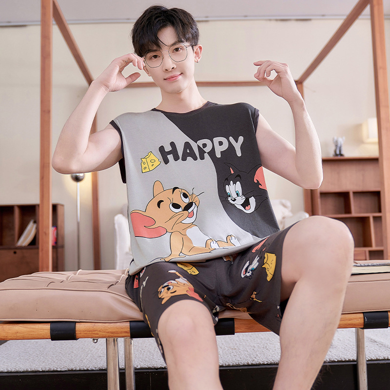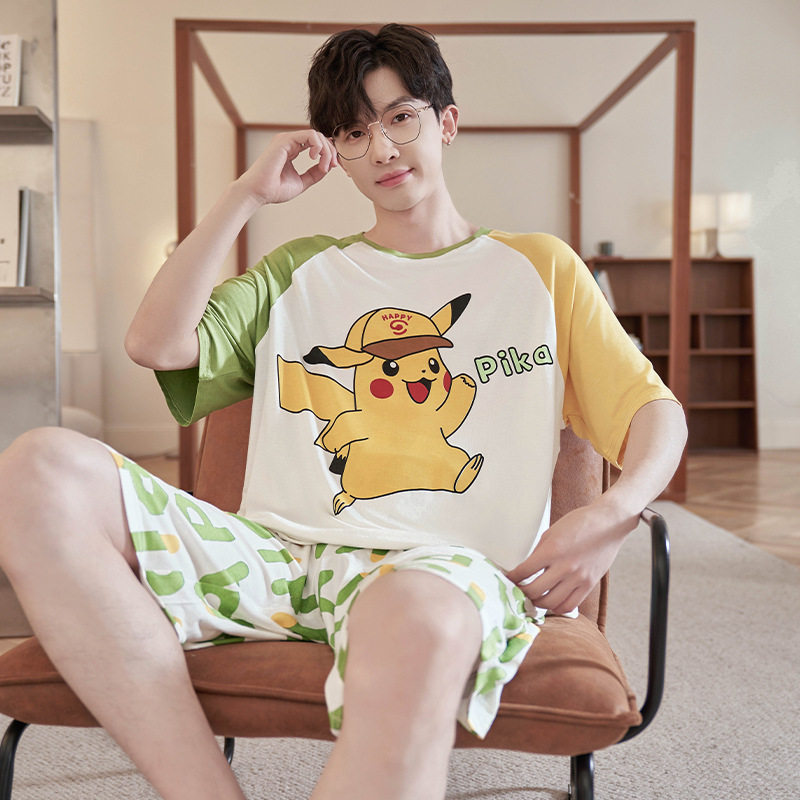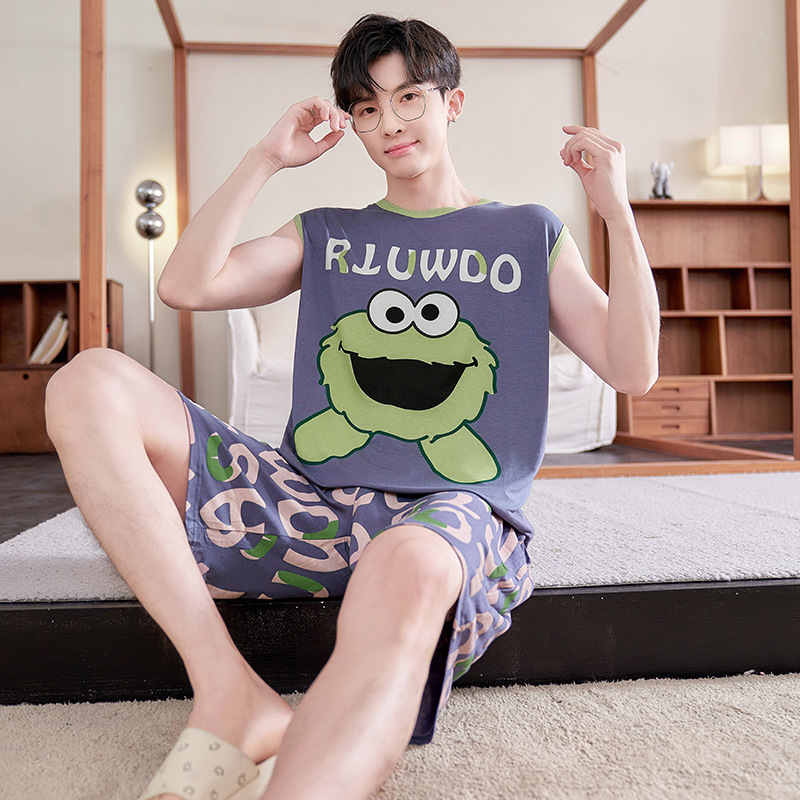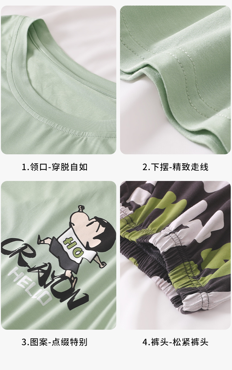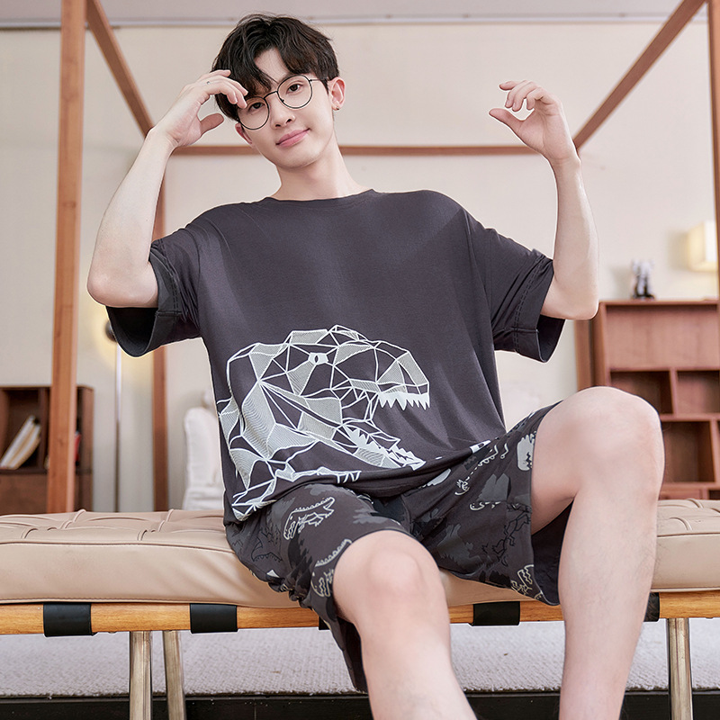 여름 잠옷 학생 만화 홈 옷 세트 소년 십대 느슨한 얇은 남자 큰 아이 여름 학생스토어 가기