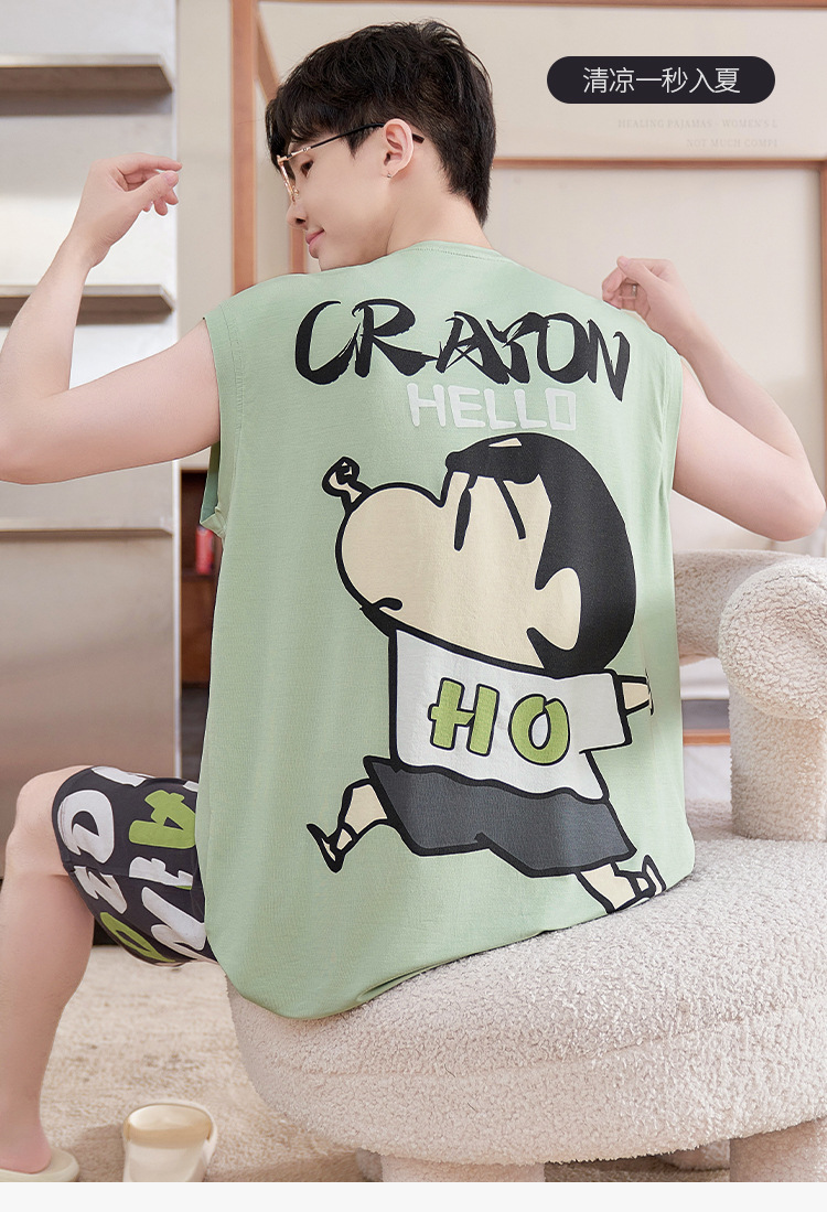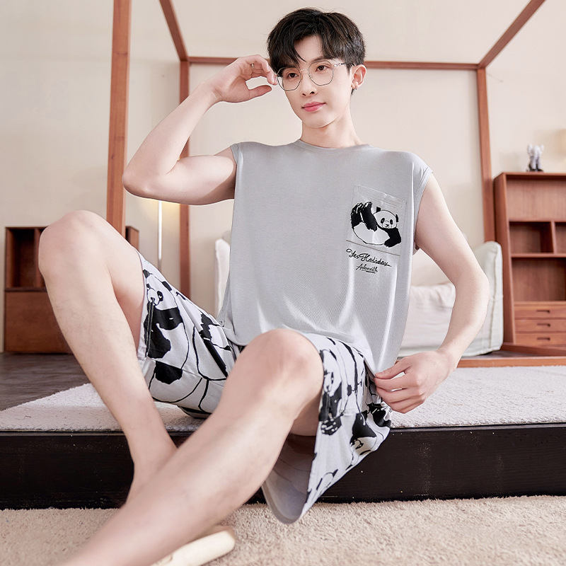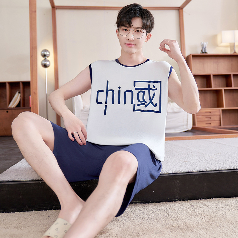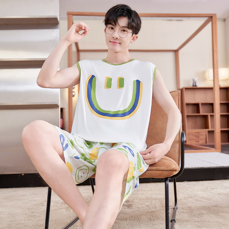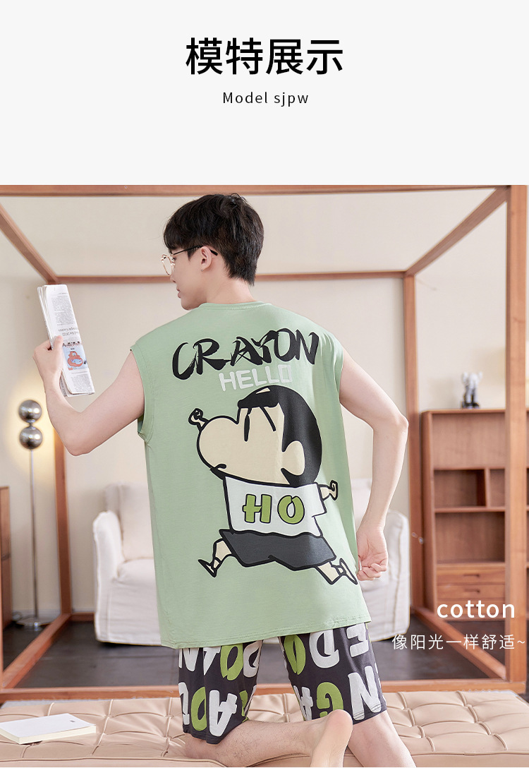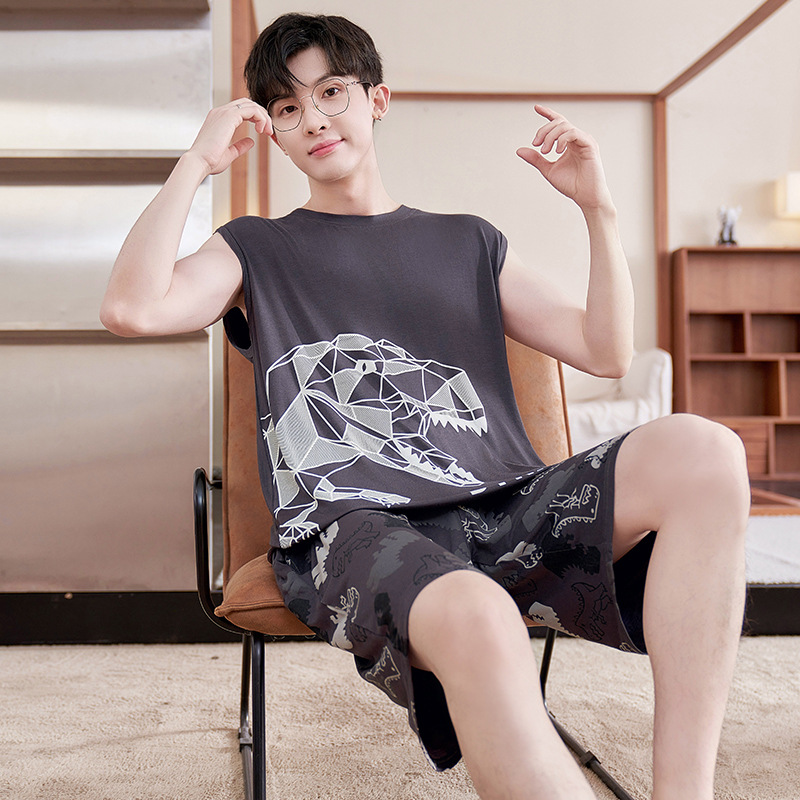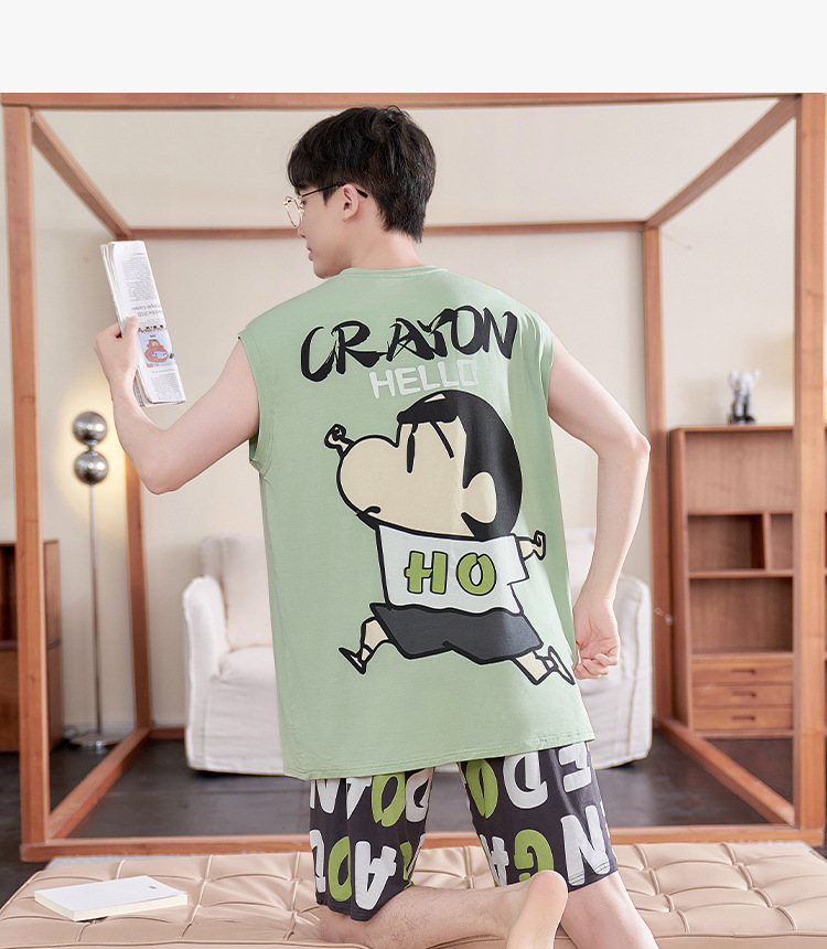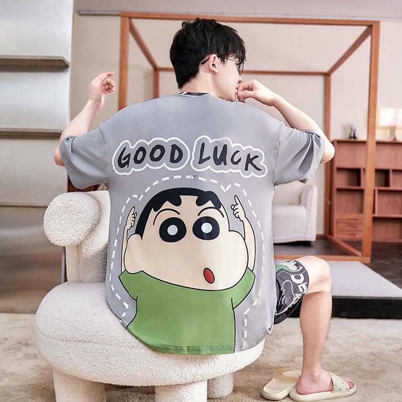 여름 잠옷 학생 만화 홈 옷 세트 소년 십대 느슨한 얇은 남자 큰 아이 여름 학생스토어 가기