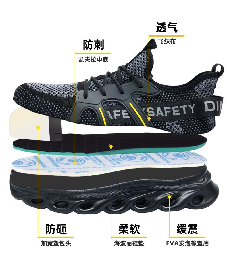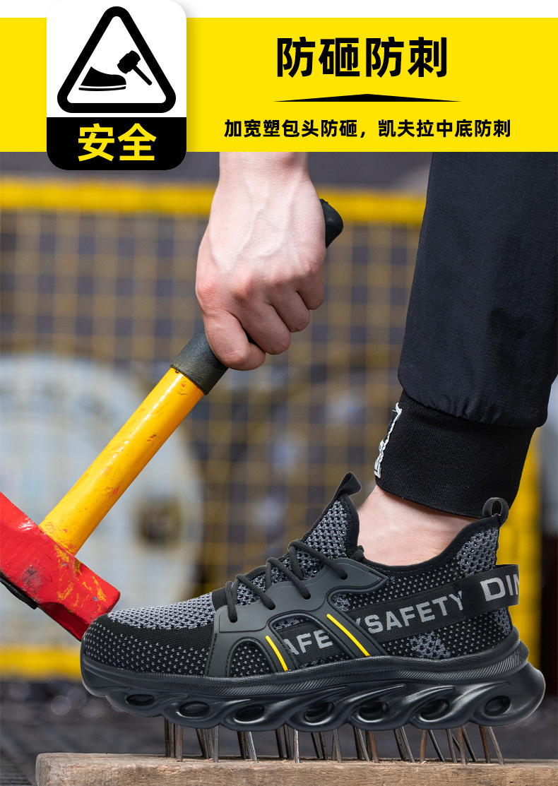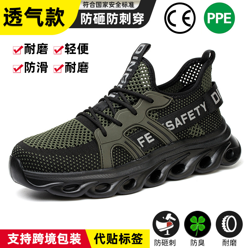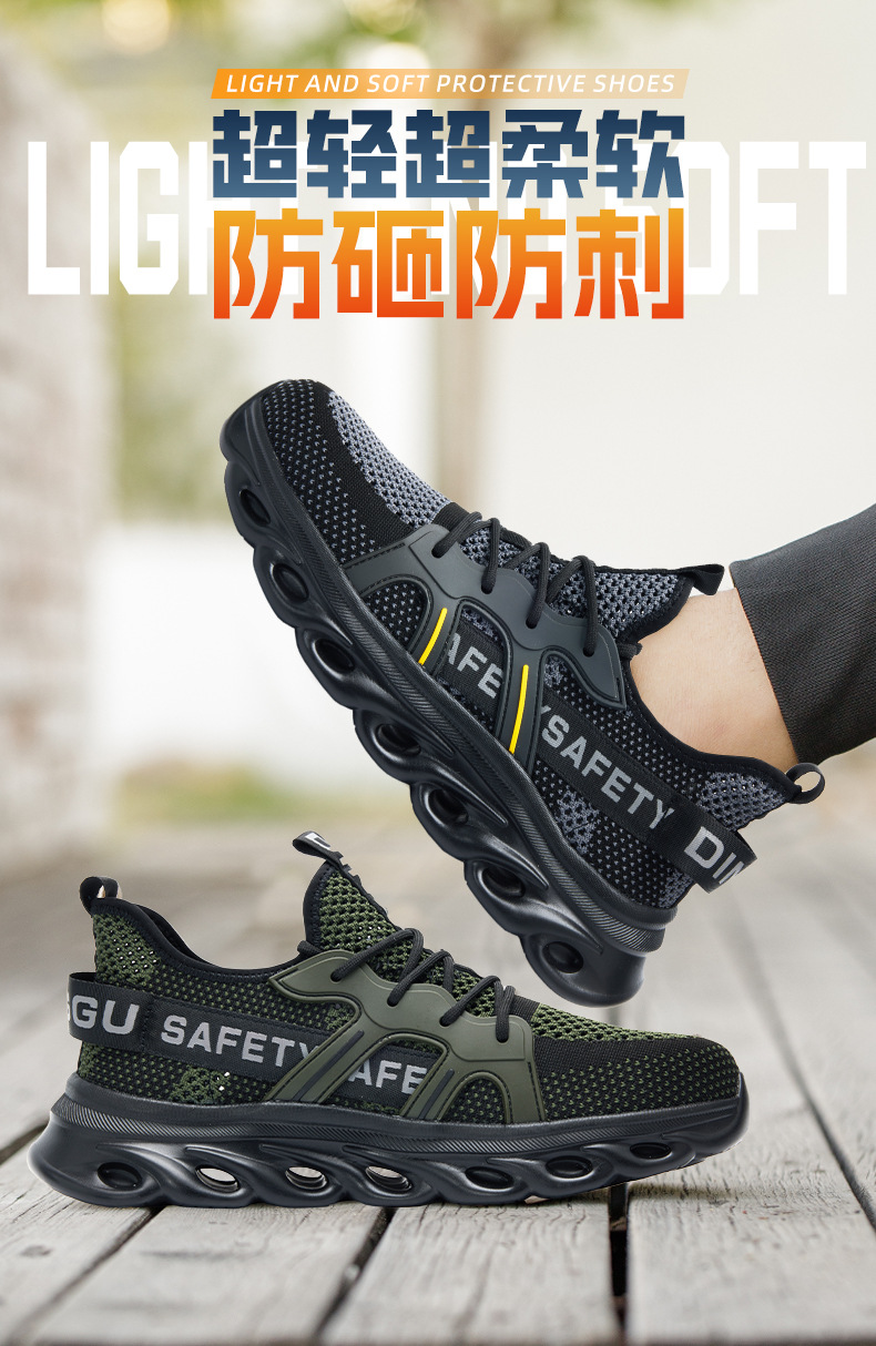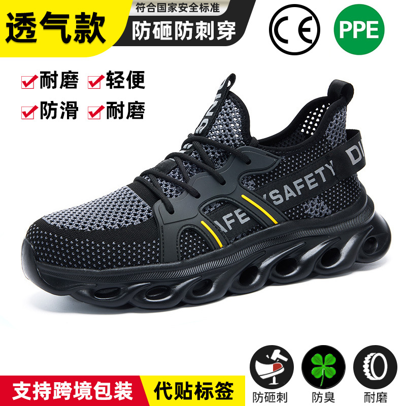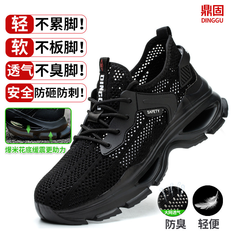 딩구 노동 보호 신발 남성용 안티 스매싱 안티 피어싱 플라잉 위빙 경량 크로스 국경 편안한 작업 보호 여름 안전 신발 도매스토어 가기