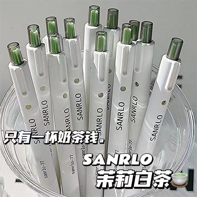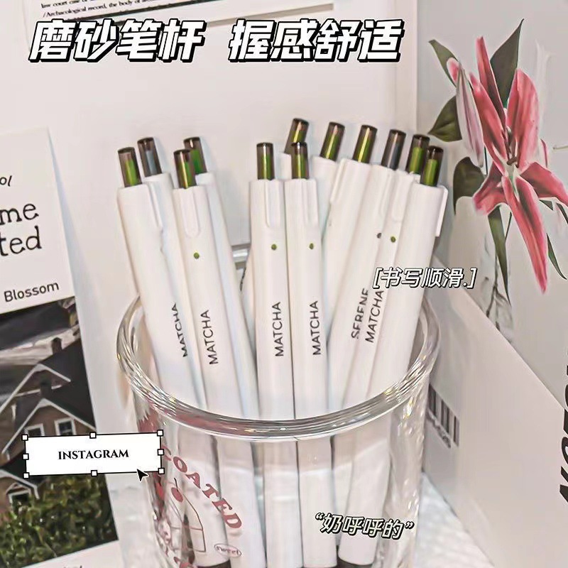 재스민 그린 프레스 펜, 높은 색상 가치 학생들은 ST 퀵 드라이 브러시 질문 블랙 0.5 젤 펜 작성
