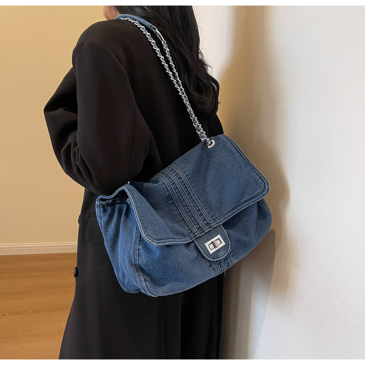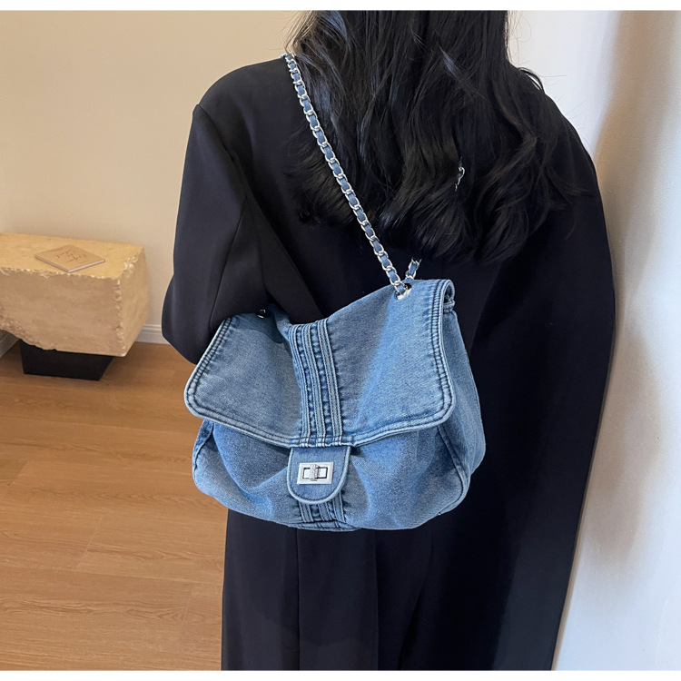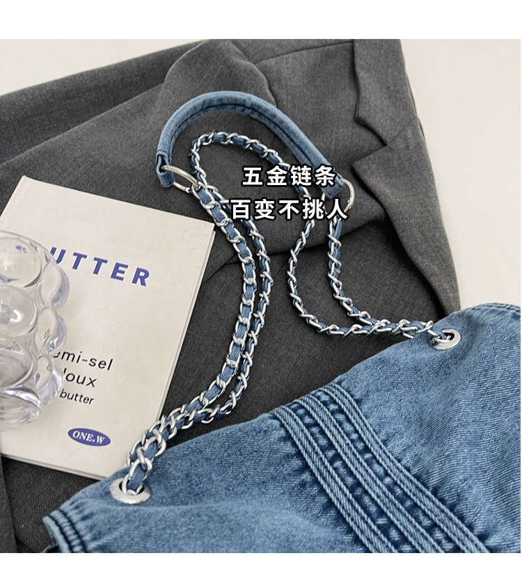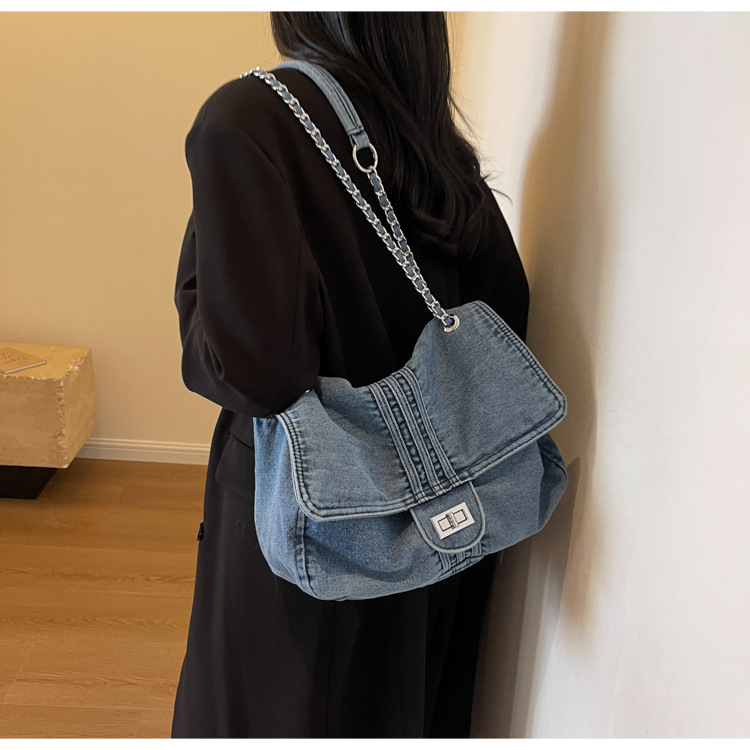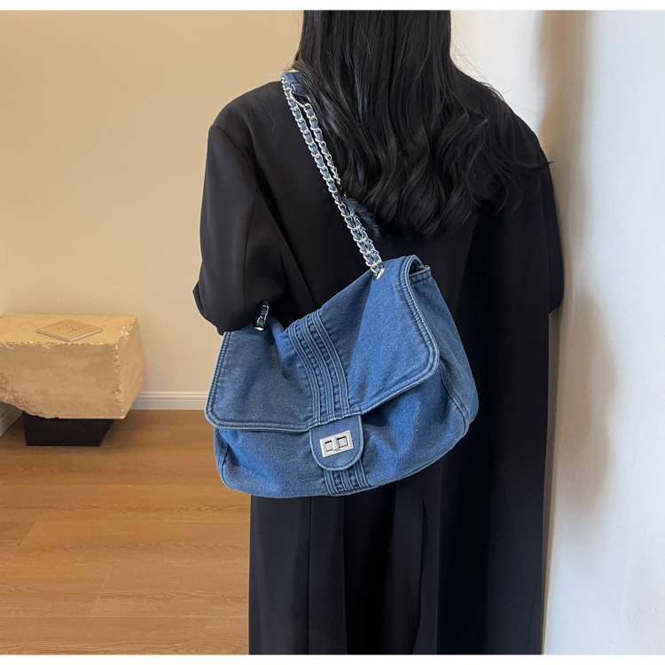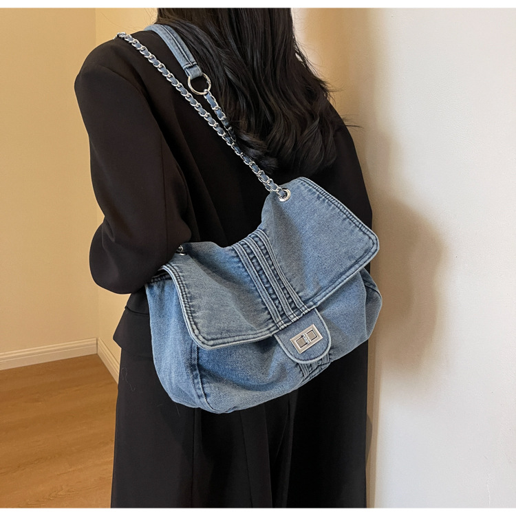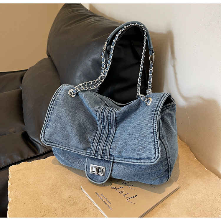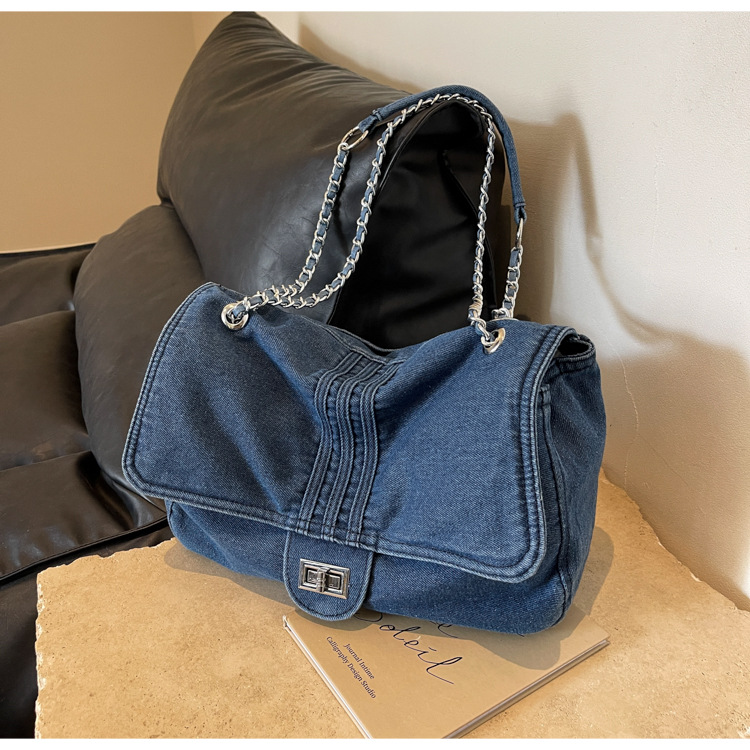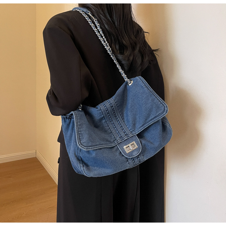 데님 가방 여성의 2024 새로운 유행 대용량 체인 어깨 가방 고급 토트 여행자 가방스토어 가기