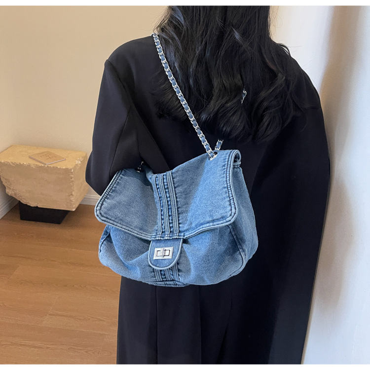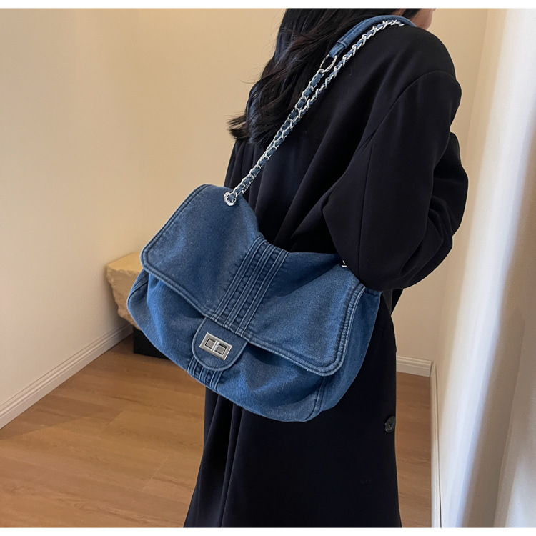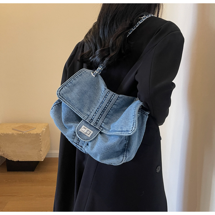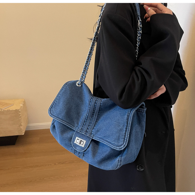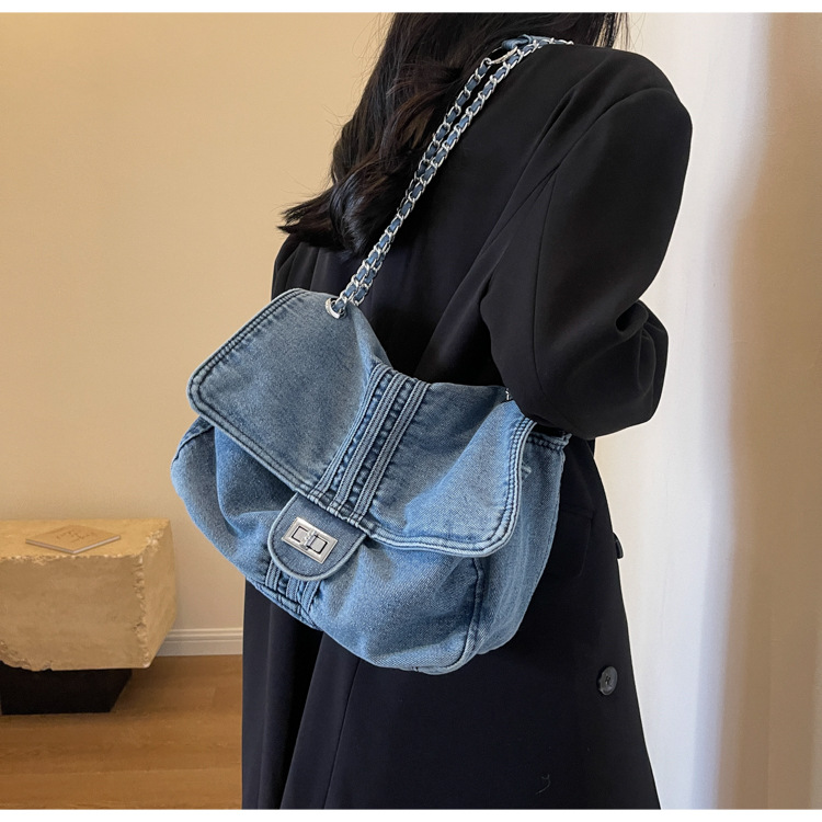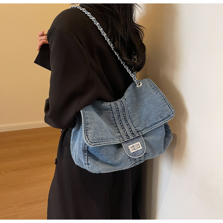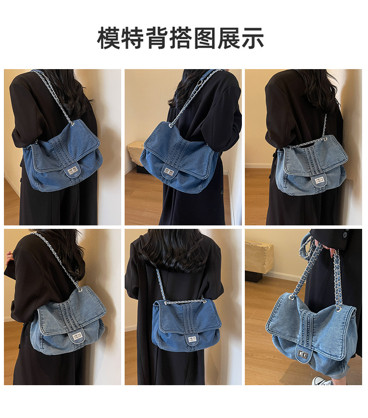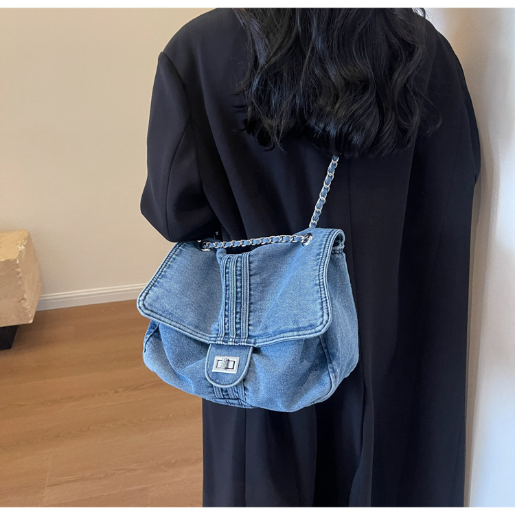 데님 가방 여성의 2024 새로운 유행 대용량 체인 어깨 가방 고급 토트 여행자 가방스토어 가기