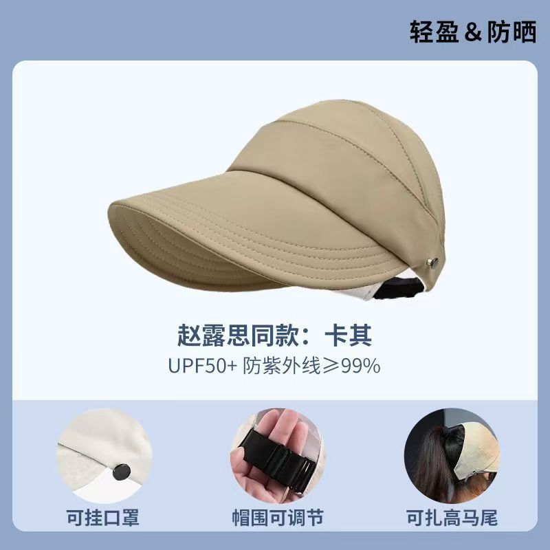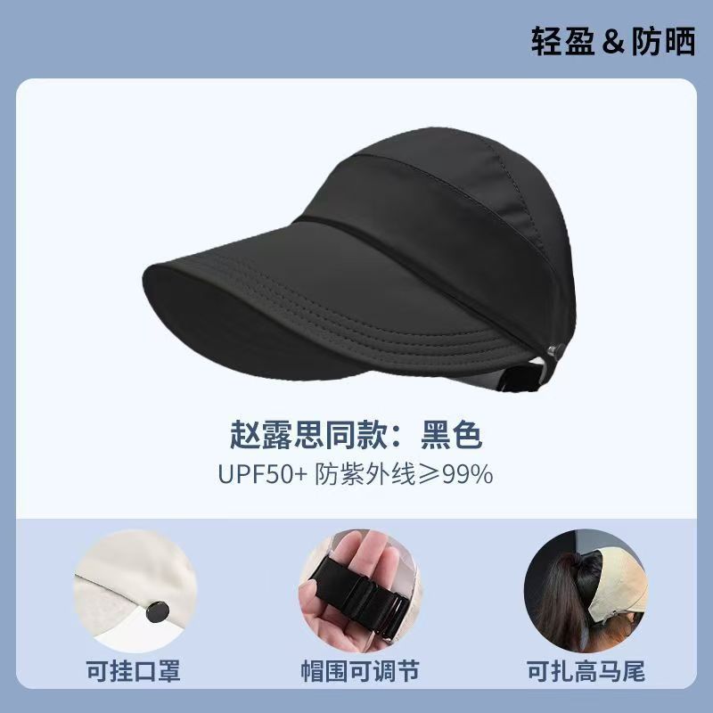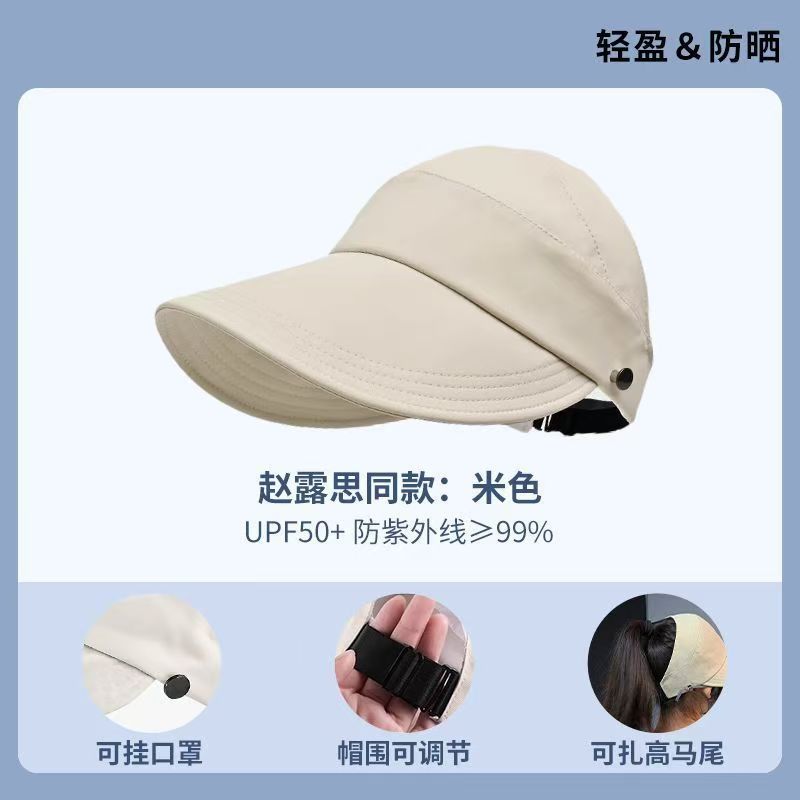 Zhao Rusi 같은 스타일의 태양 보호 모자 여성 Peather 빈 탑 모자 태양 모자 접이식 여름 태양 모자스토어 가기