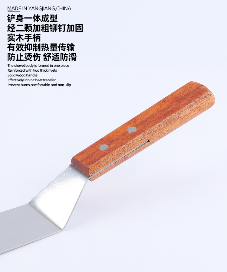• 나무 손잡이가 달린 짧은 튀김 주걱 (전체 길이 32cm)