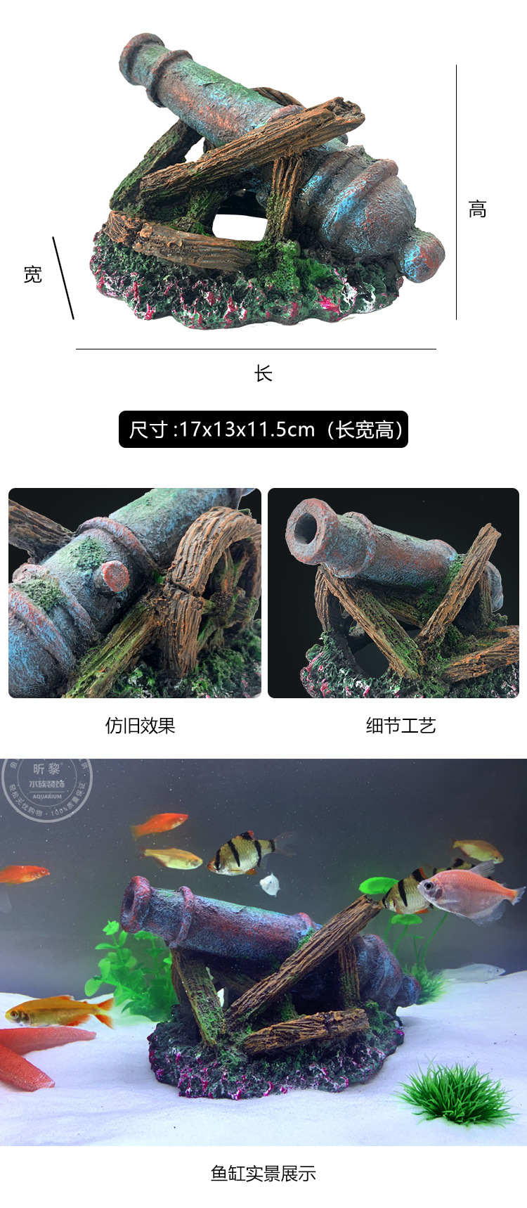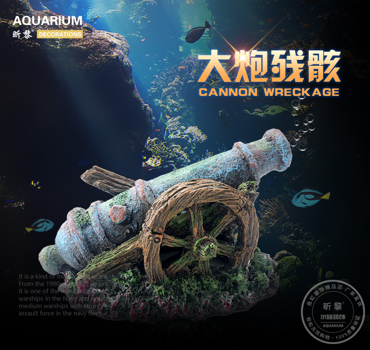 물고기 탱크 풍경 대포 난파선 장식품 회피 장식 수족관 세트 시뮬레이션 전쟁 배터리 수지 공예스토어 가기