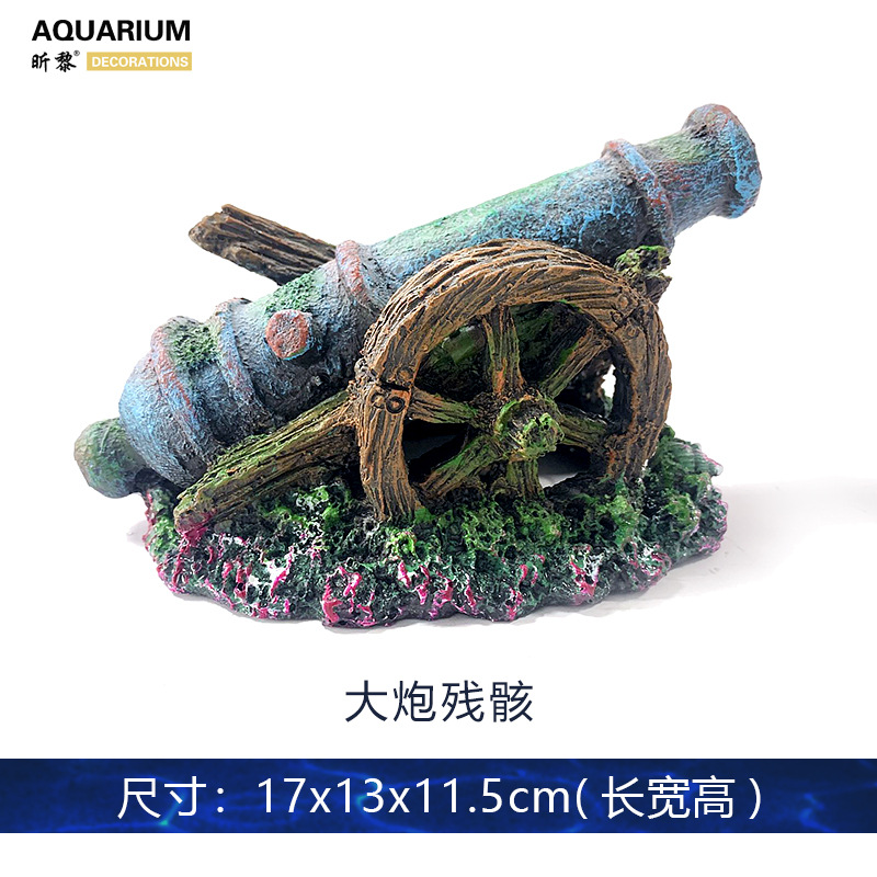 물고기 탱크 풍경 대포 난파선 장식품 회피 장식 수족관 세트 시뮬레이션 전쟁 배터리 수지 공예