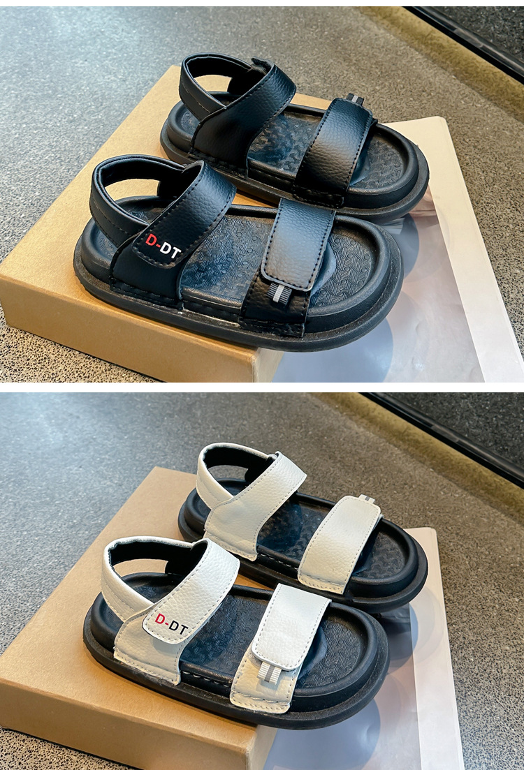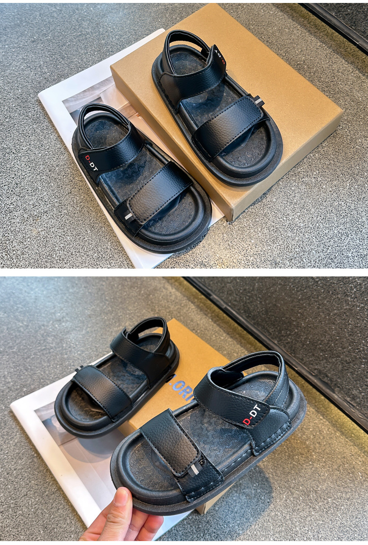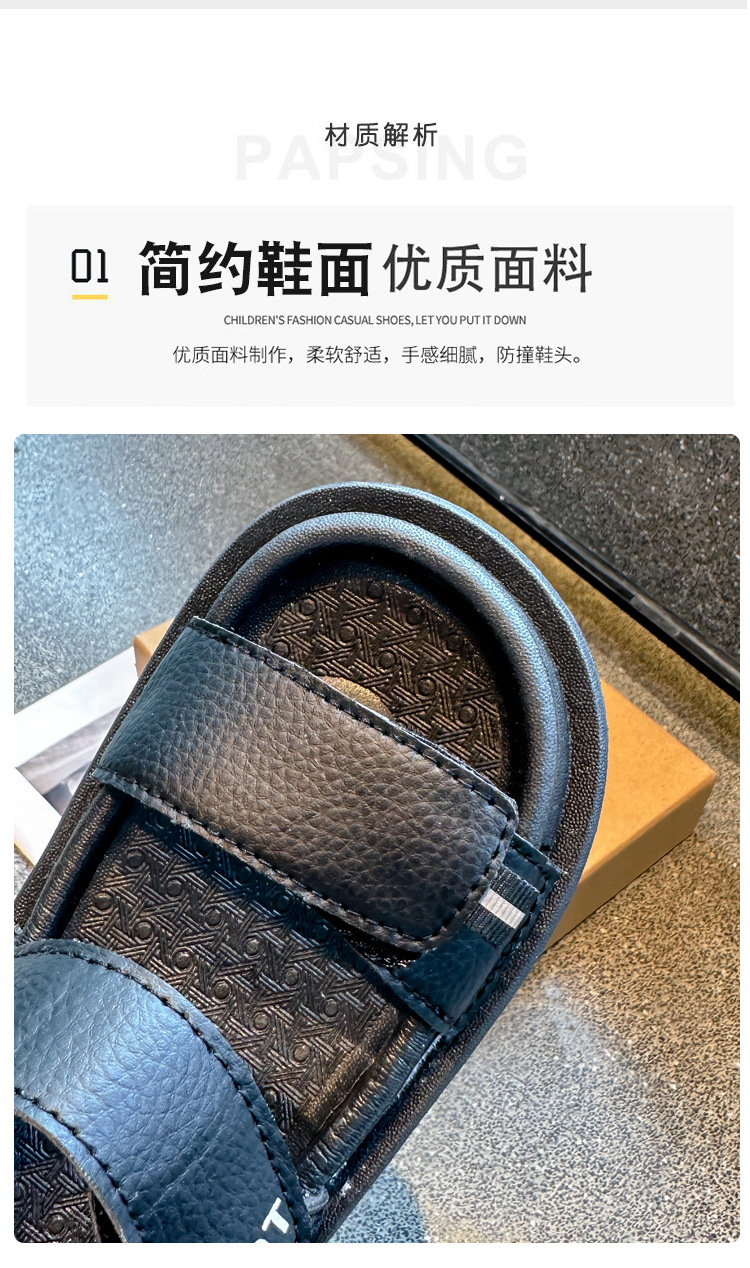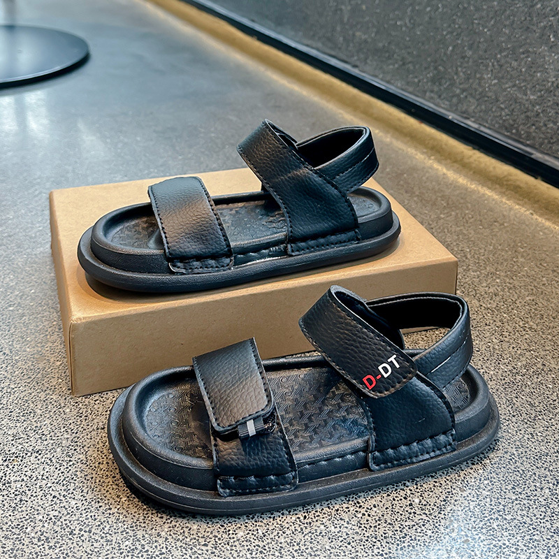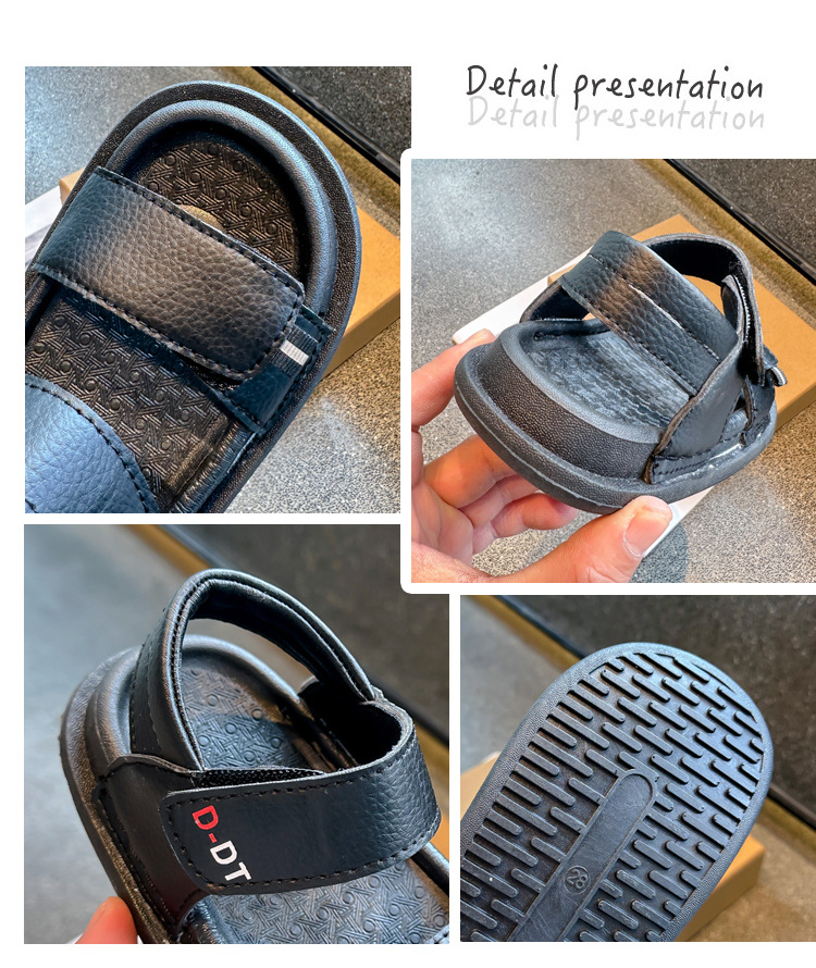 남아용 검정 샌들 비치 슈즈 2026 여름 신상 스티치 디테일 중소형 아동용 부드러운 밑창 아동 캐주얼 패션스토어 가기