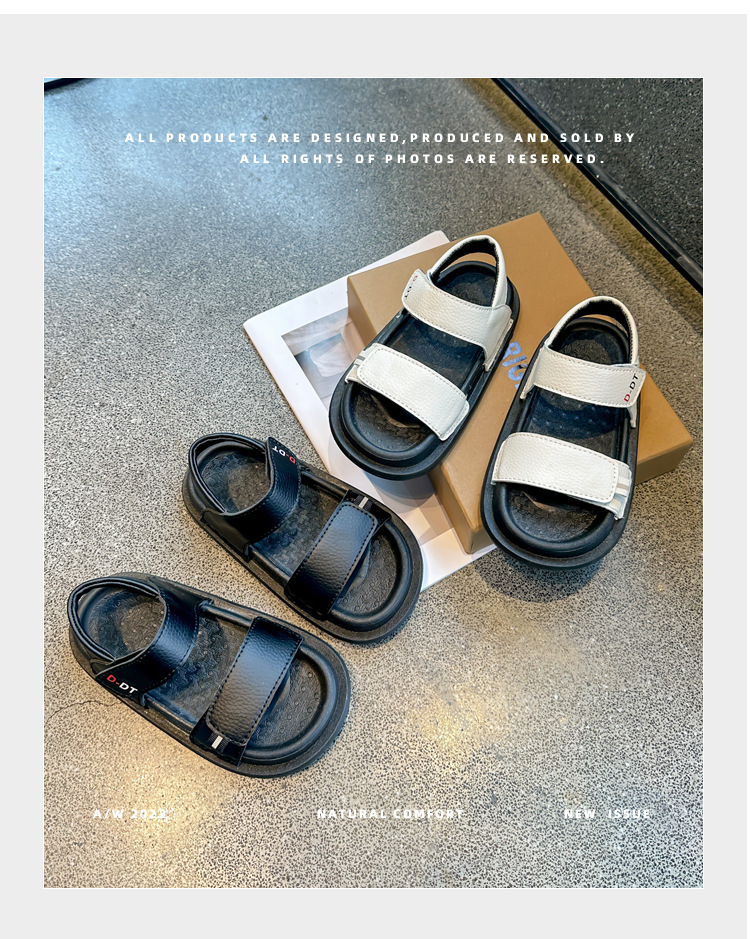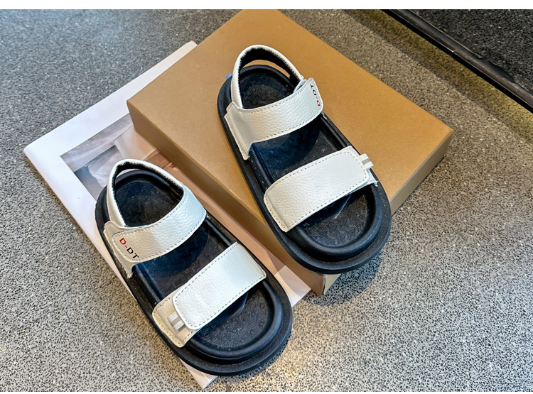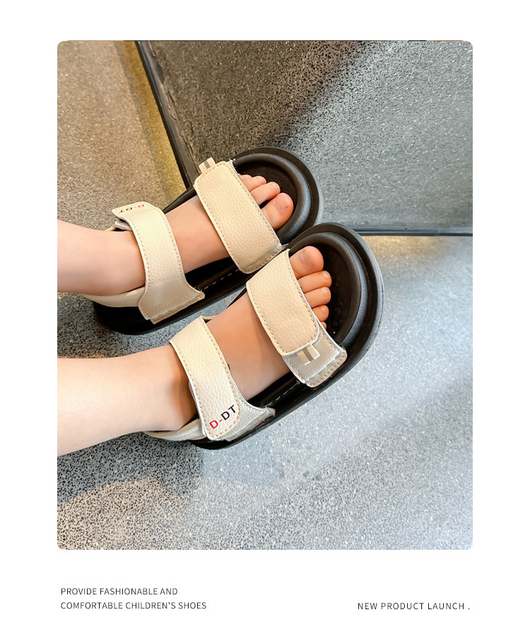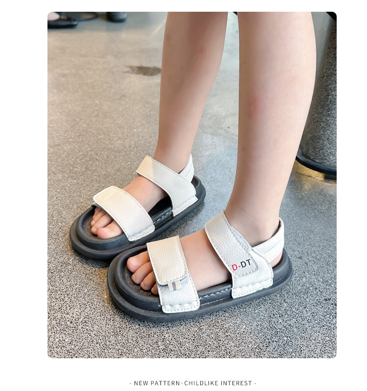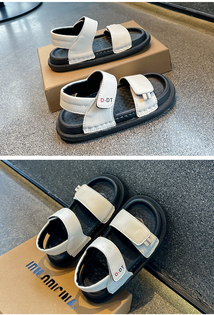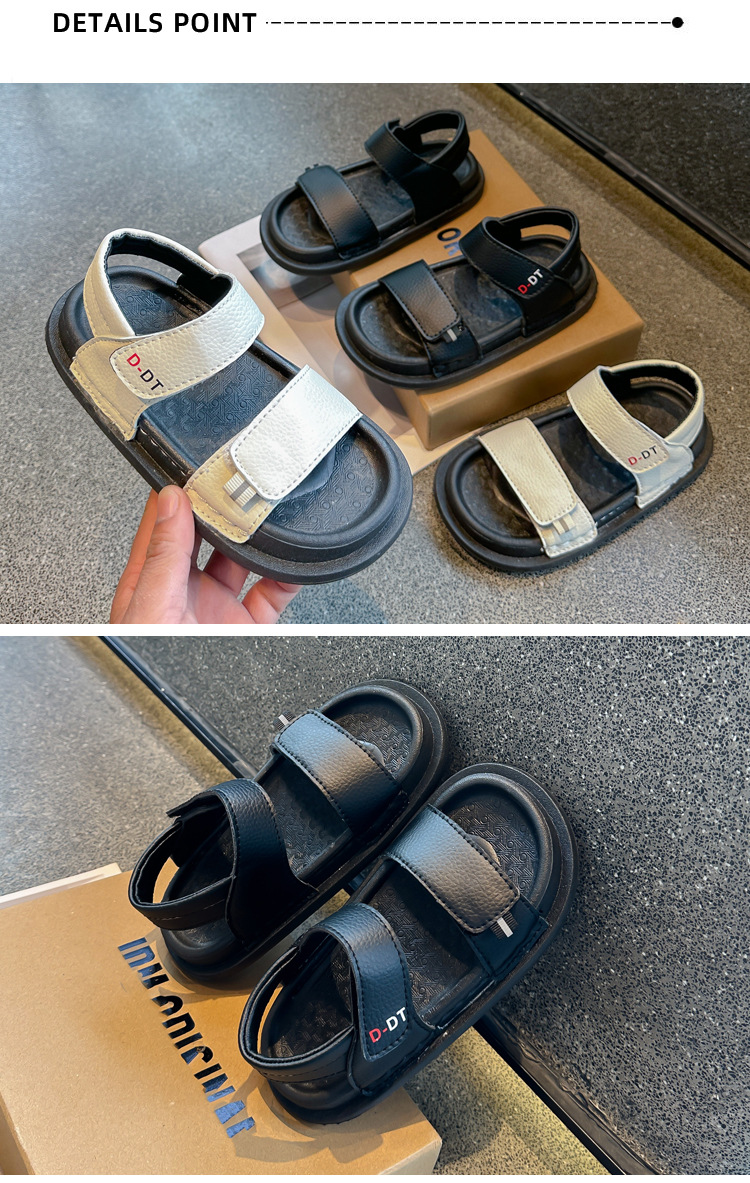 남아용 검정 샌들 비치 슈즈 2026 여름 신상 스티치 디테일 중소형 아동용 부드러운 밑창 아동 캐주얼 패션스토어 가기