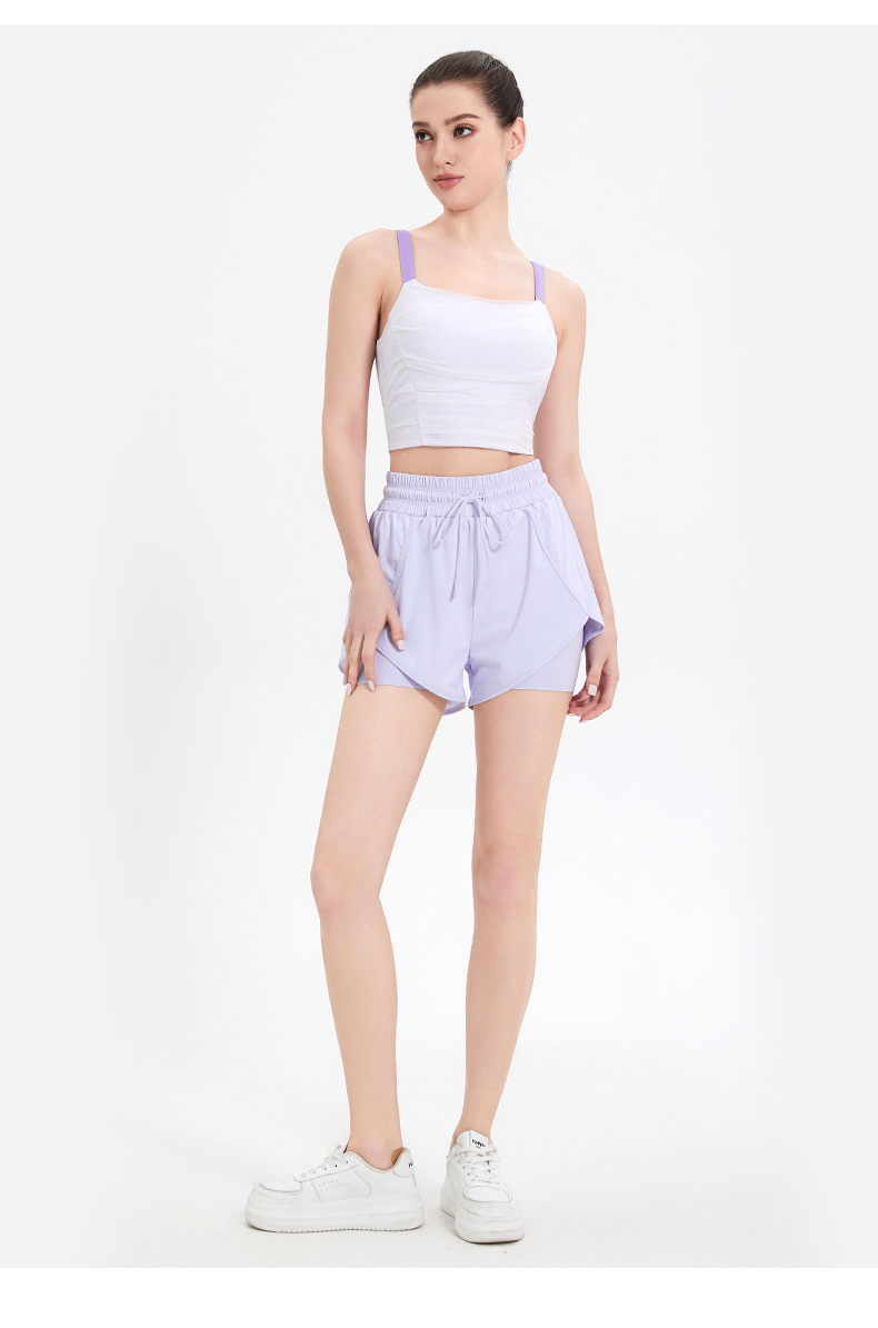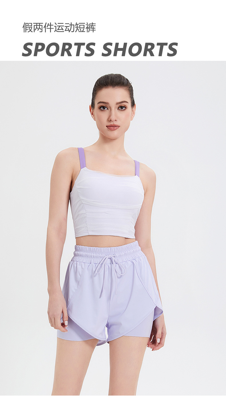 여성용 페이크 투피스 드로스트링 스포츠 반바지, 여름 런닝 피트니스 속건 팬츠, 노출 방지 요가 팬츠, 통기성스토어 가기
