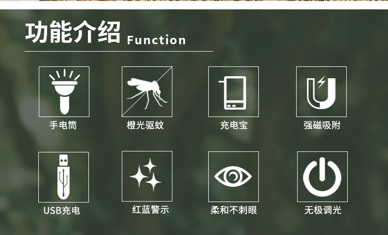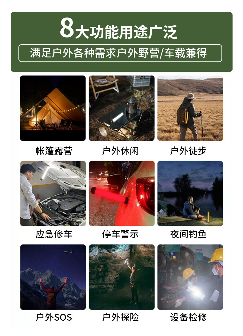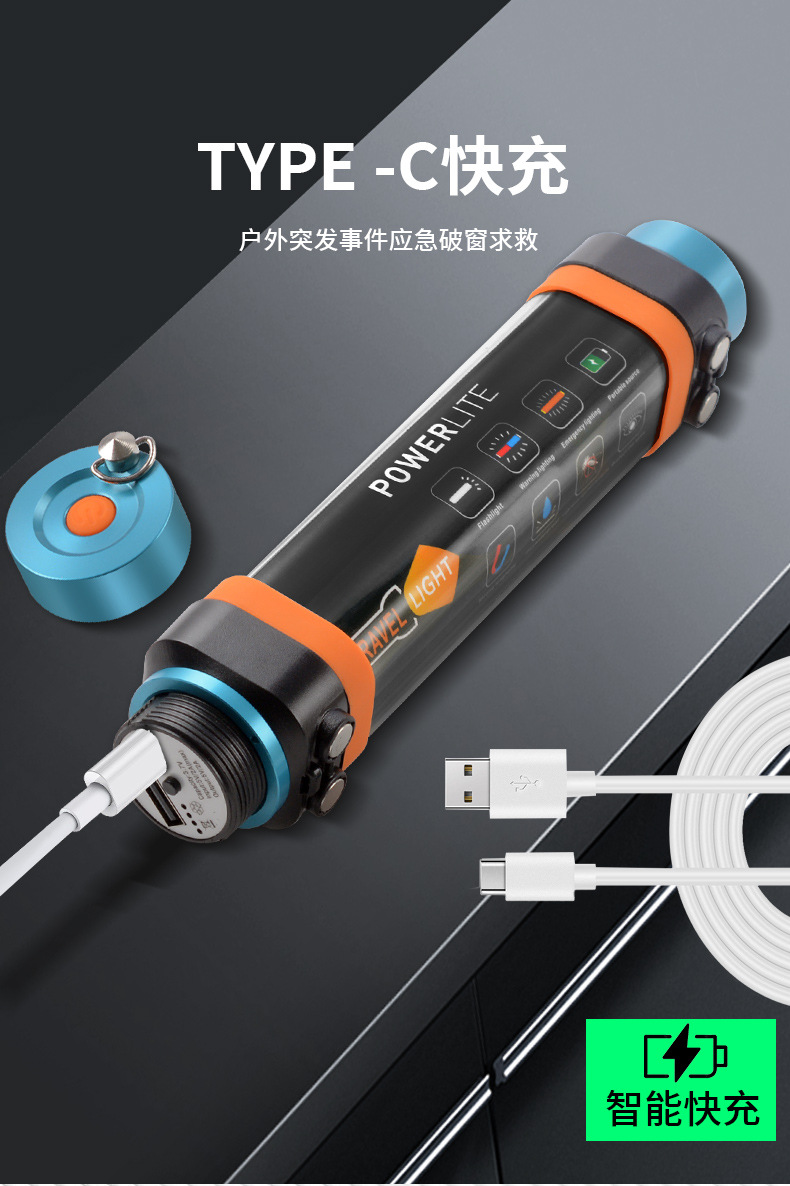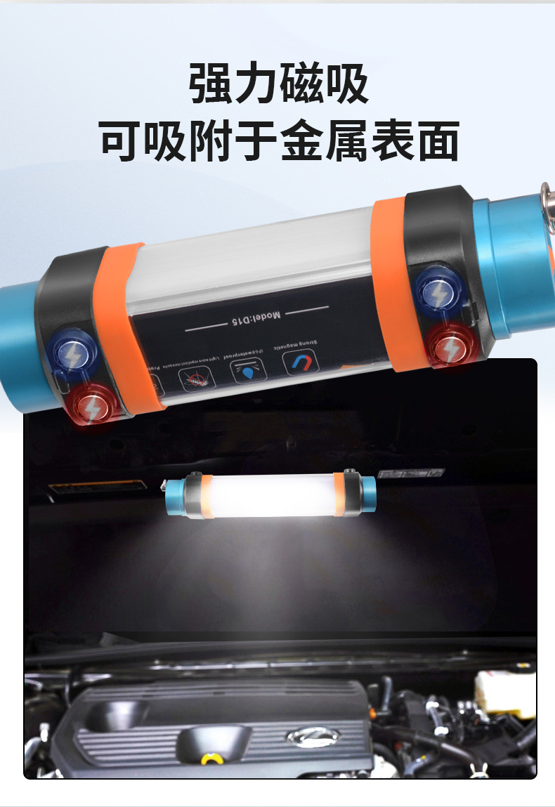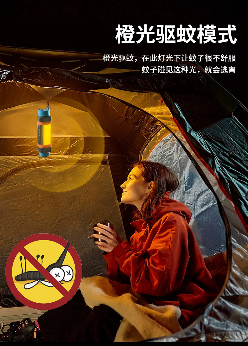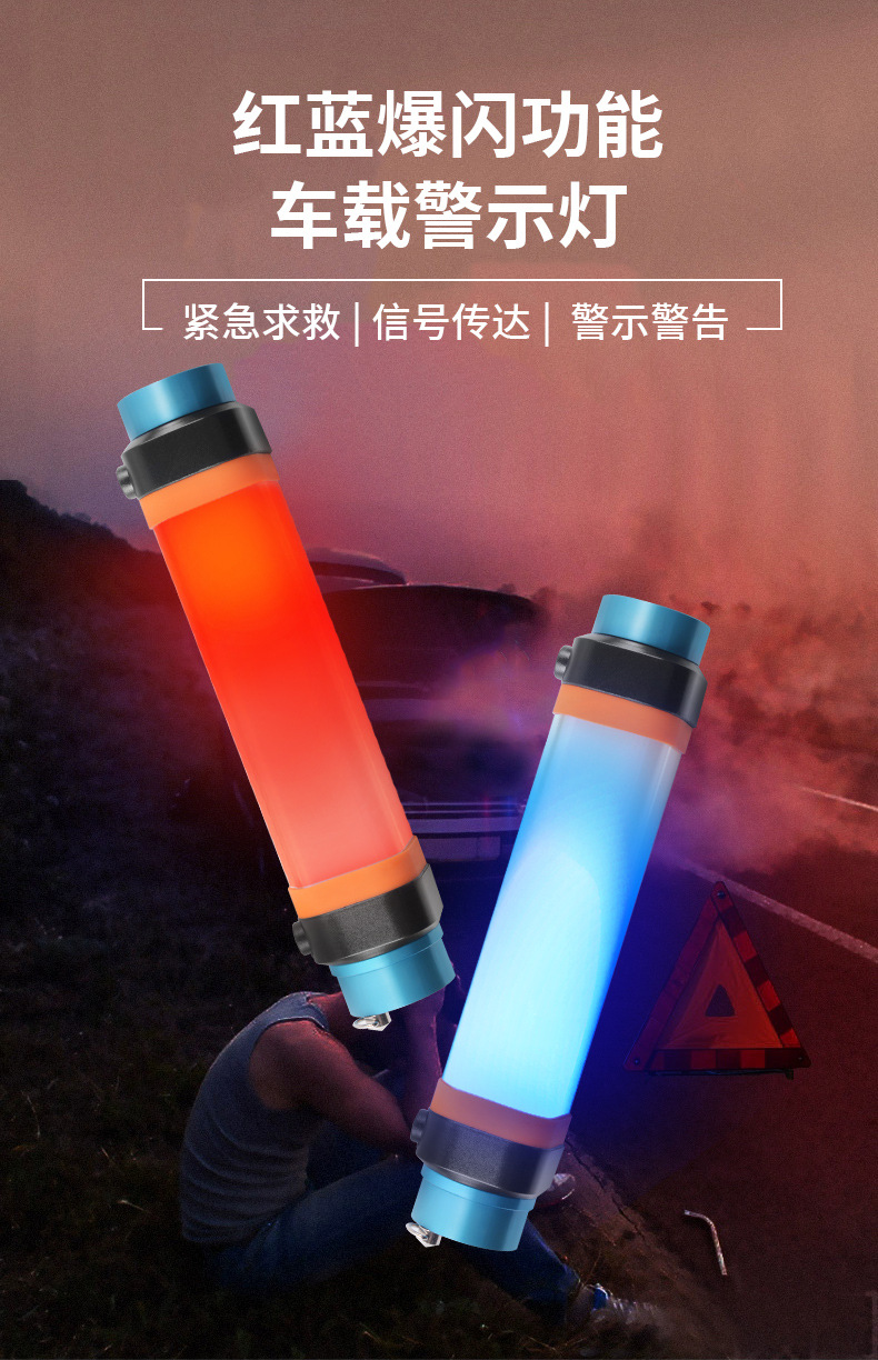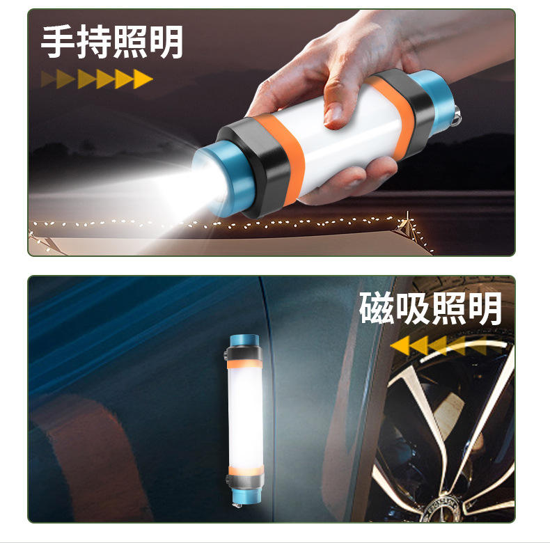 야외 캠핑 가벼운 모기 구충제 모기 빨간 경고 자동차 안전 망치 손전등 자기 작업 빛 긴 배터리 수명