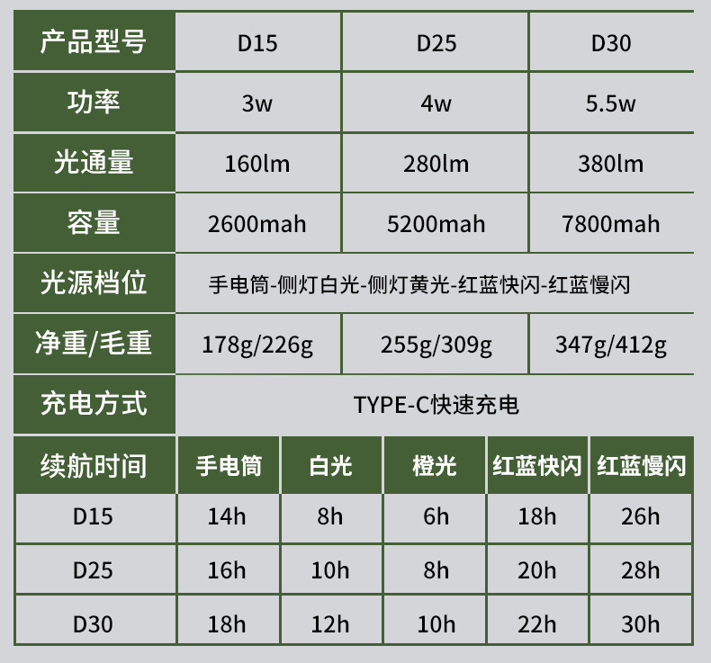 • 3W [내장 7800mah] 사용 가능 18-30h