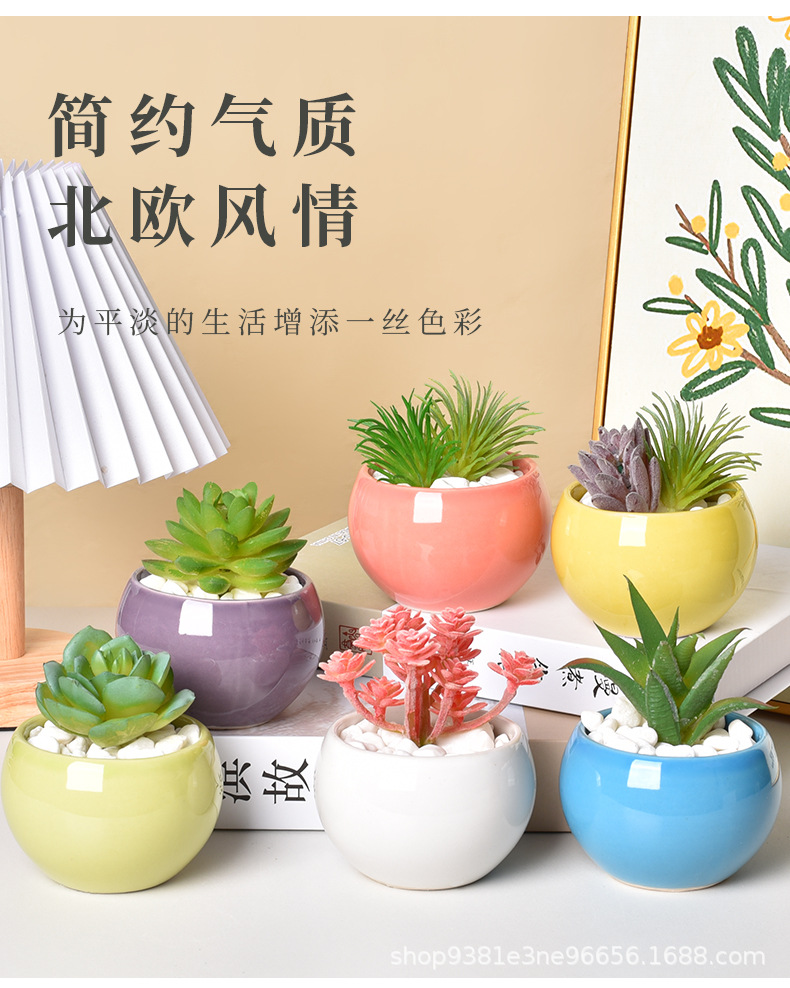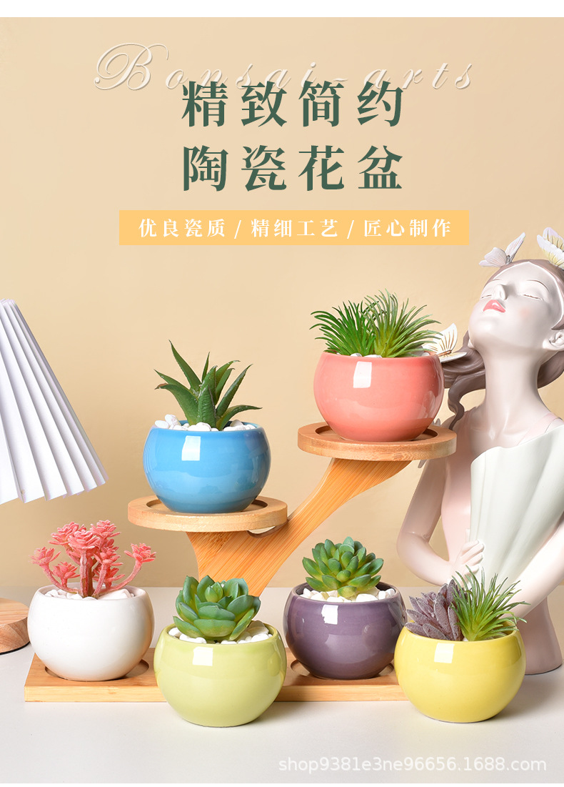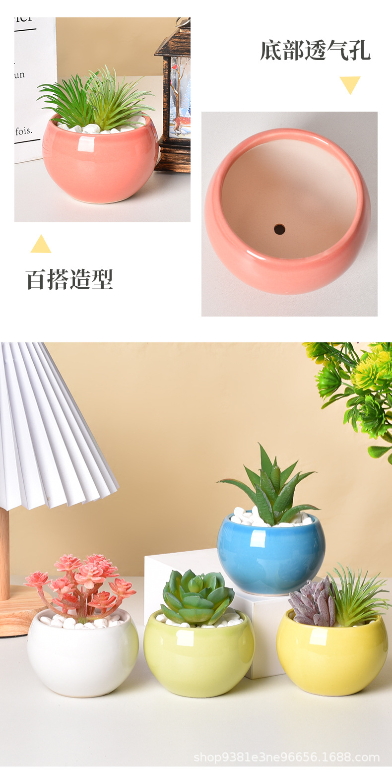 세라믹 다육식물 화분 마카롱 구형 구멍이 있는 작은 화분 창의적인 실내 장식품 도매