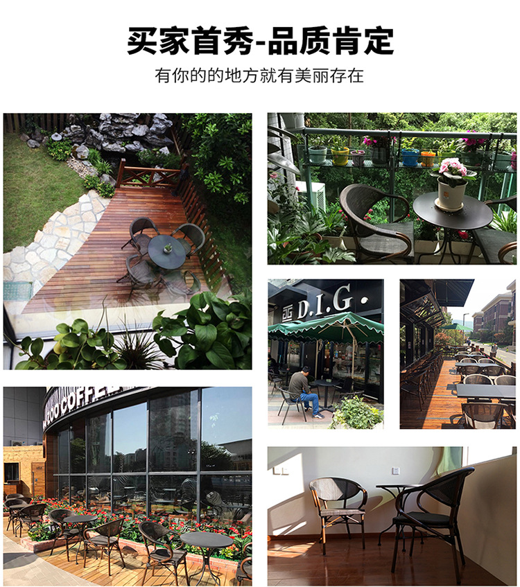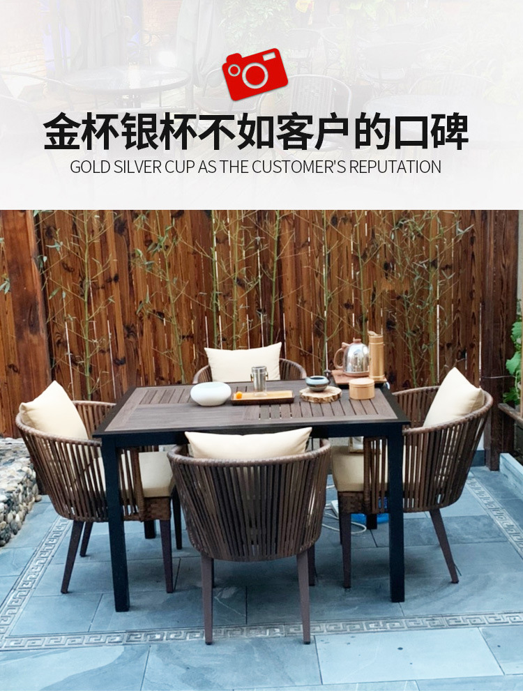 户外桌子庭院花园阳台咖啡厅酒店外摆防腐木奶茶店休闲岩板餐桌椅