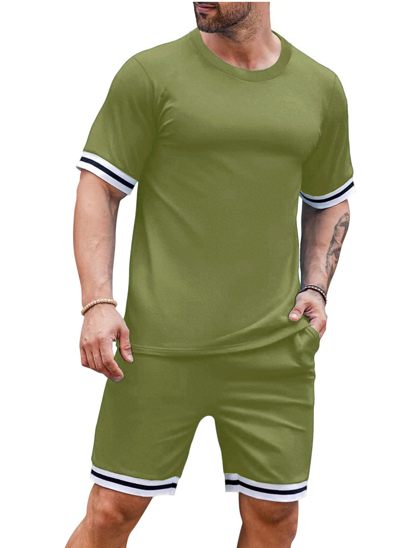 크로스보더 남성복 유럽 및 미국 여름 남성 반팔 티셔츠 라운드넥 세트 스포츠 남성 캐주얼 반바지 투피스 세트