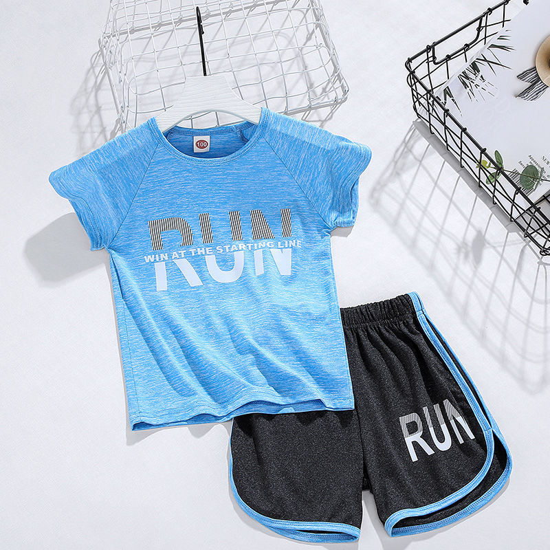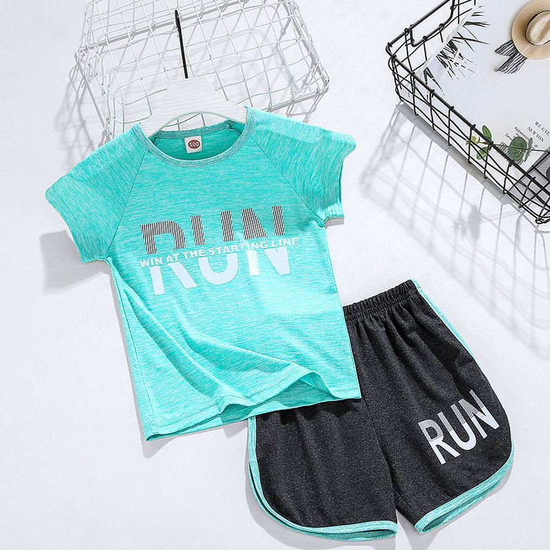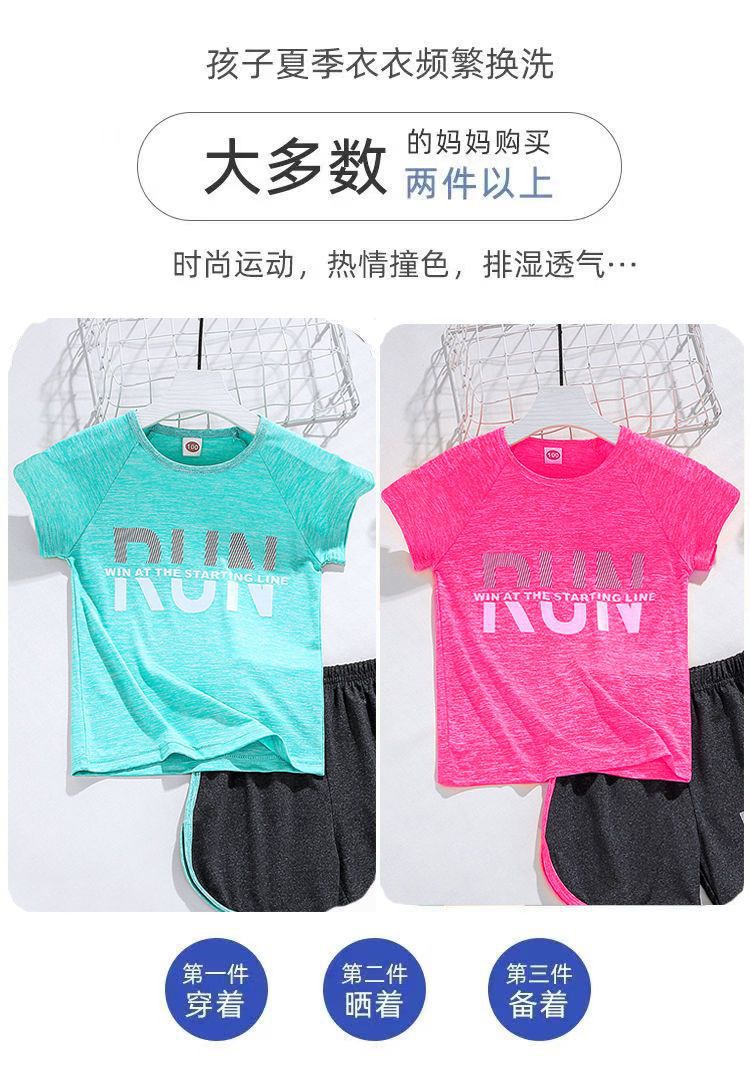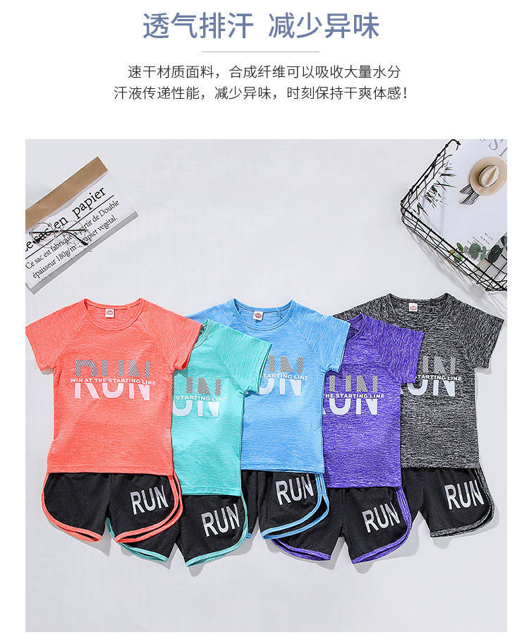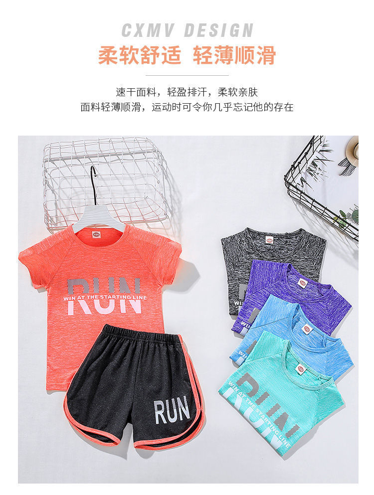 얼음 느낌 어린이 세트 소년 스포츠 여름 새로운 스타일 서양식 빠른 건조 옷 소녀 반팔 캐주얼 러닝 세트 얇은스토어 가기