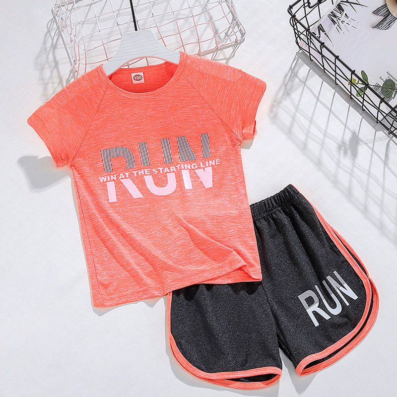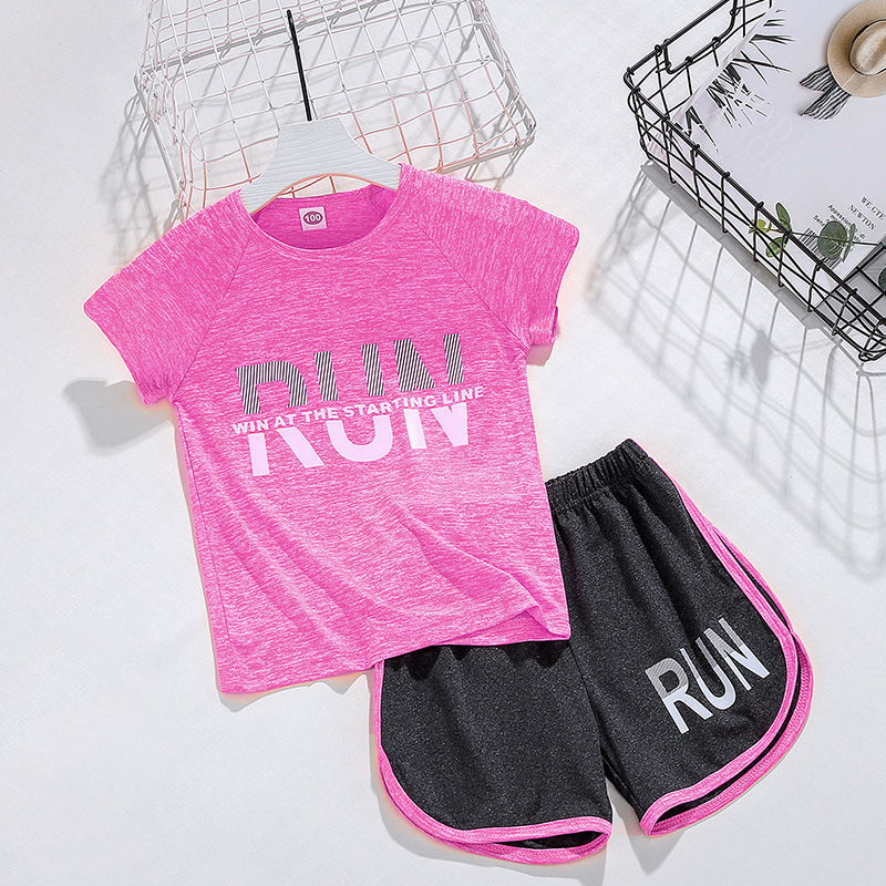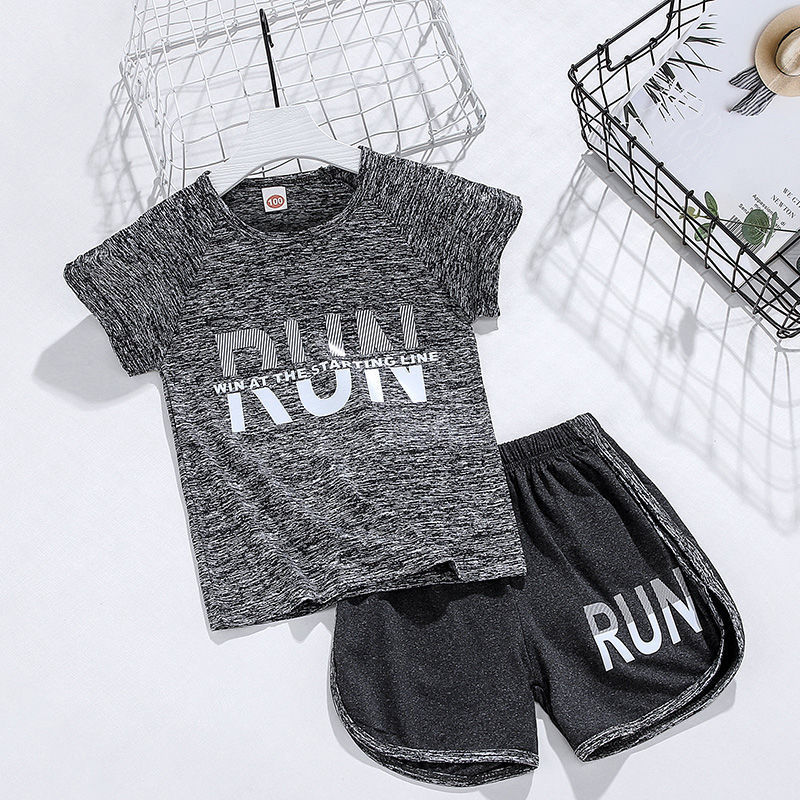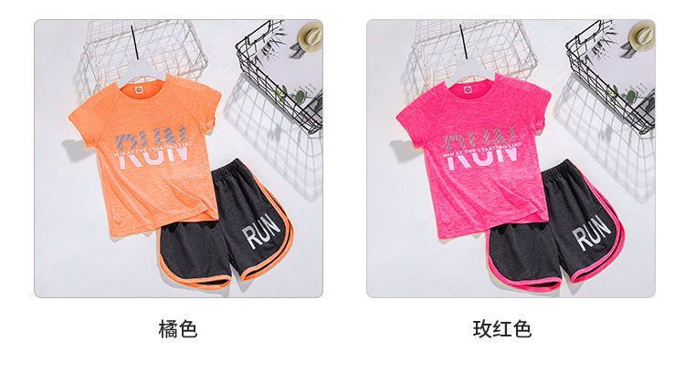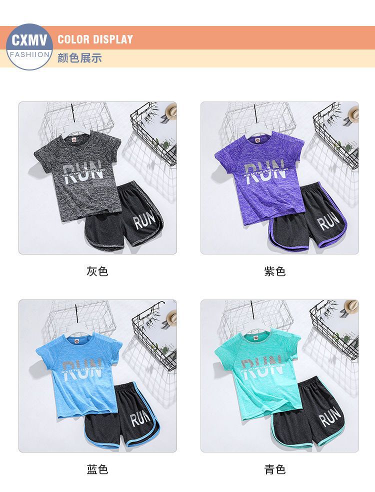 얼음 느낌 어린이 세트 소년 스포츠 여름 새로운 스타일 서양식 빠른 건조 옷 소녀 반팔 캐주얼 러닝 세트 얇은스토어 가기