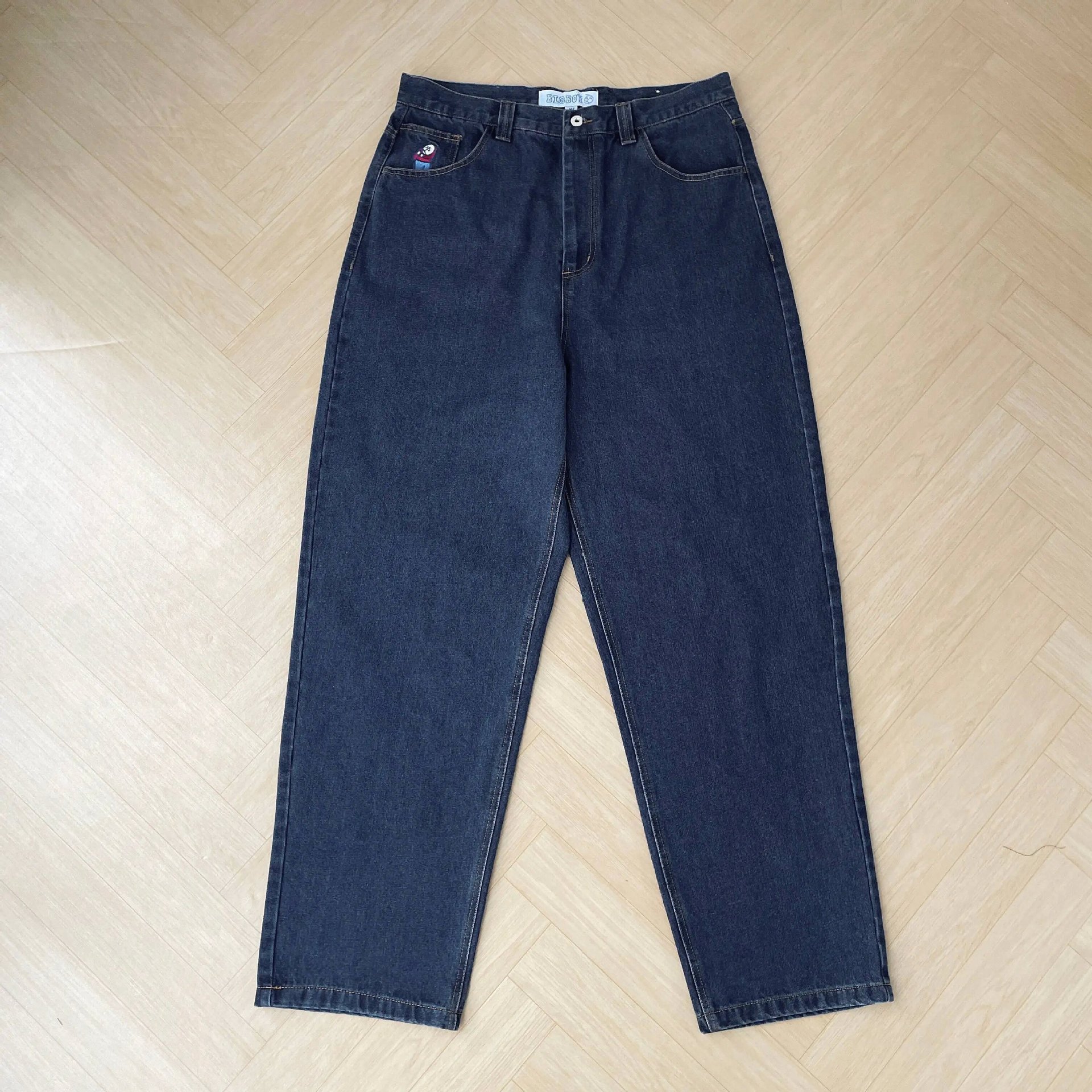 미국식 빅보이 남성 스트리트 힙합 스트레이트 데님 팬츠 남성용 패션 다용도 캐주얼 데님 팬츠스토어 가기