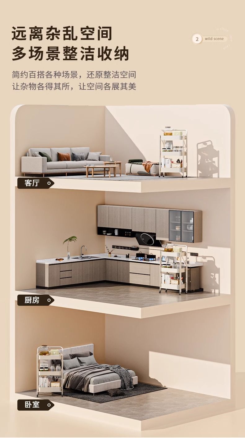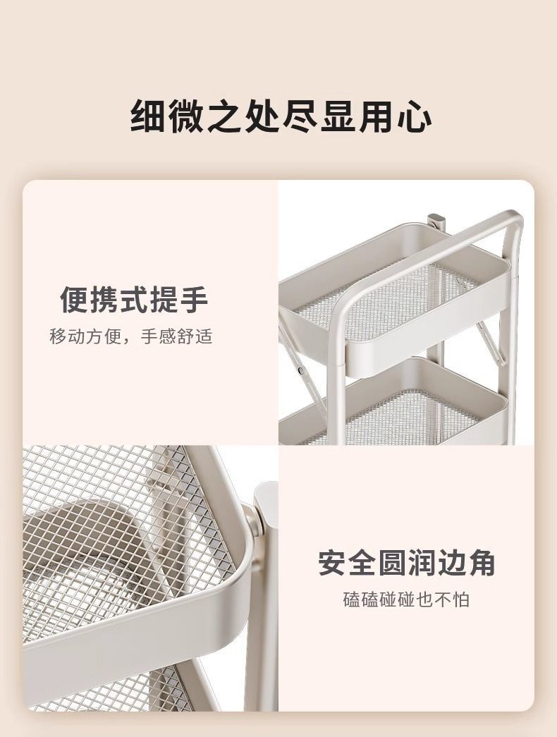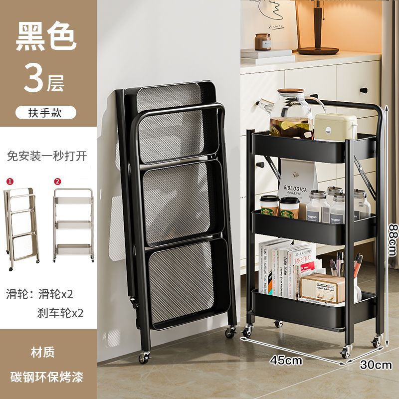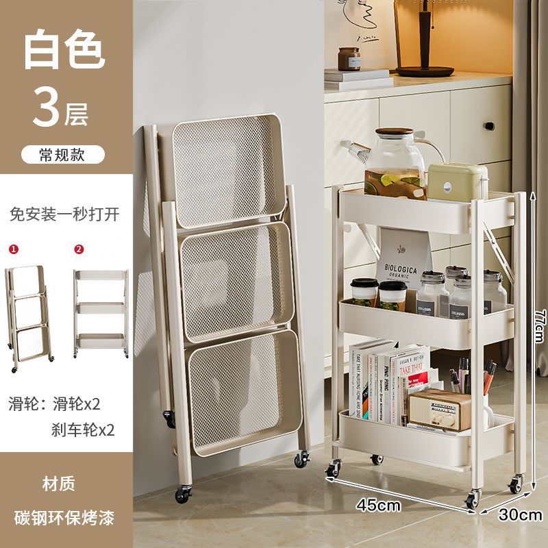 하이 퀄리티 바닥 트롤리 스토리지 랙 주방 스토리지 랙 가정용 거실 다층 접이식 모바일 스낵 랙