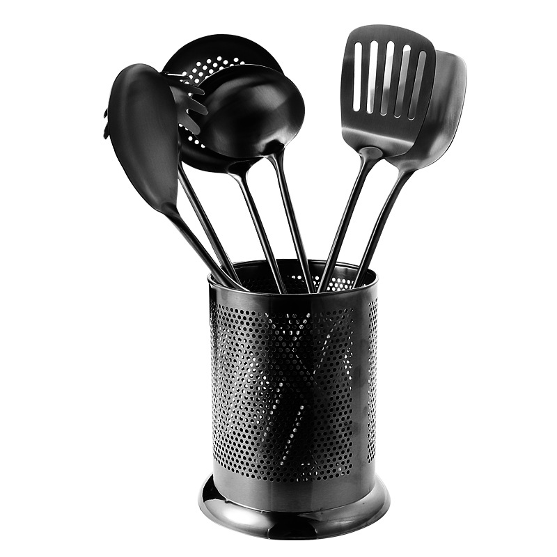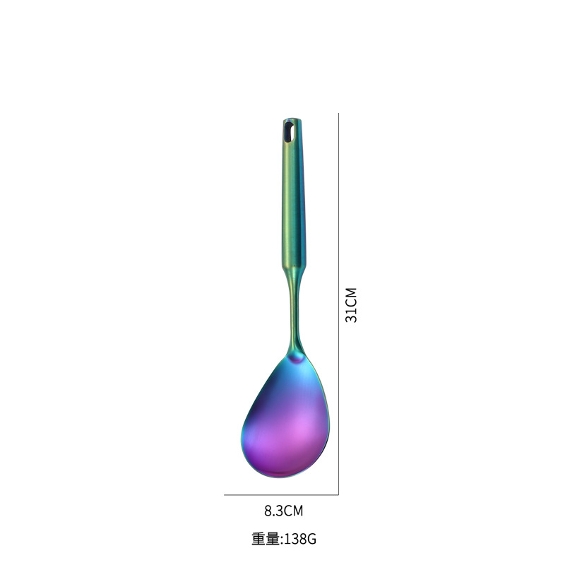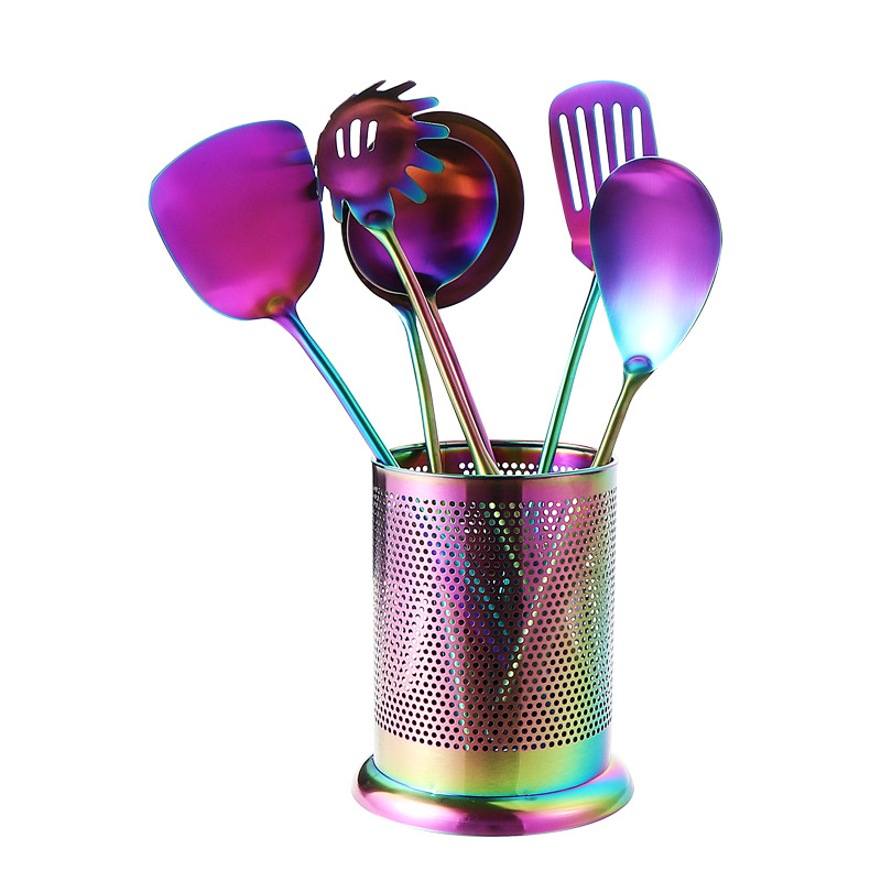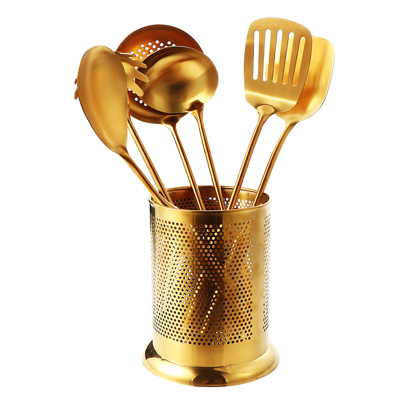 국경 간 주방 용품 7 피스 세트 주걱 수프 숟가락 소쿠리 플랫 주걱 국수 낚시 쌀 스푼 티타늄 도금 선물 주방 요리 도구
