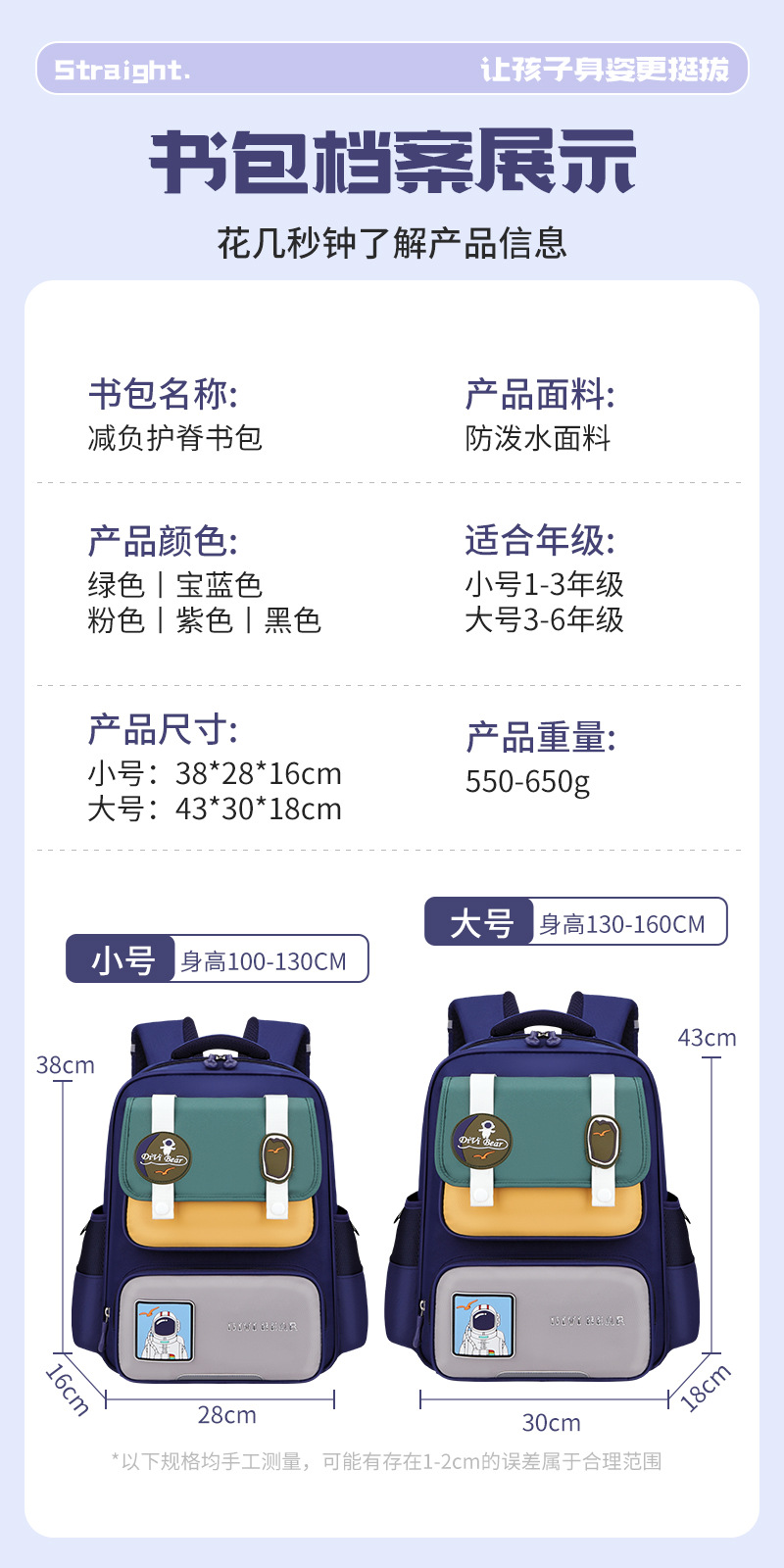 초등학교 학교 가방 여성 1-3-5-6 학년 초경량 대용량 어린이 학교 가방 남성 경량 능선 보호 배낭 여성