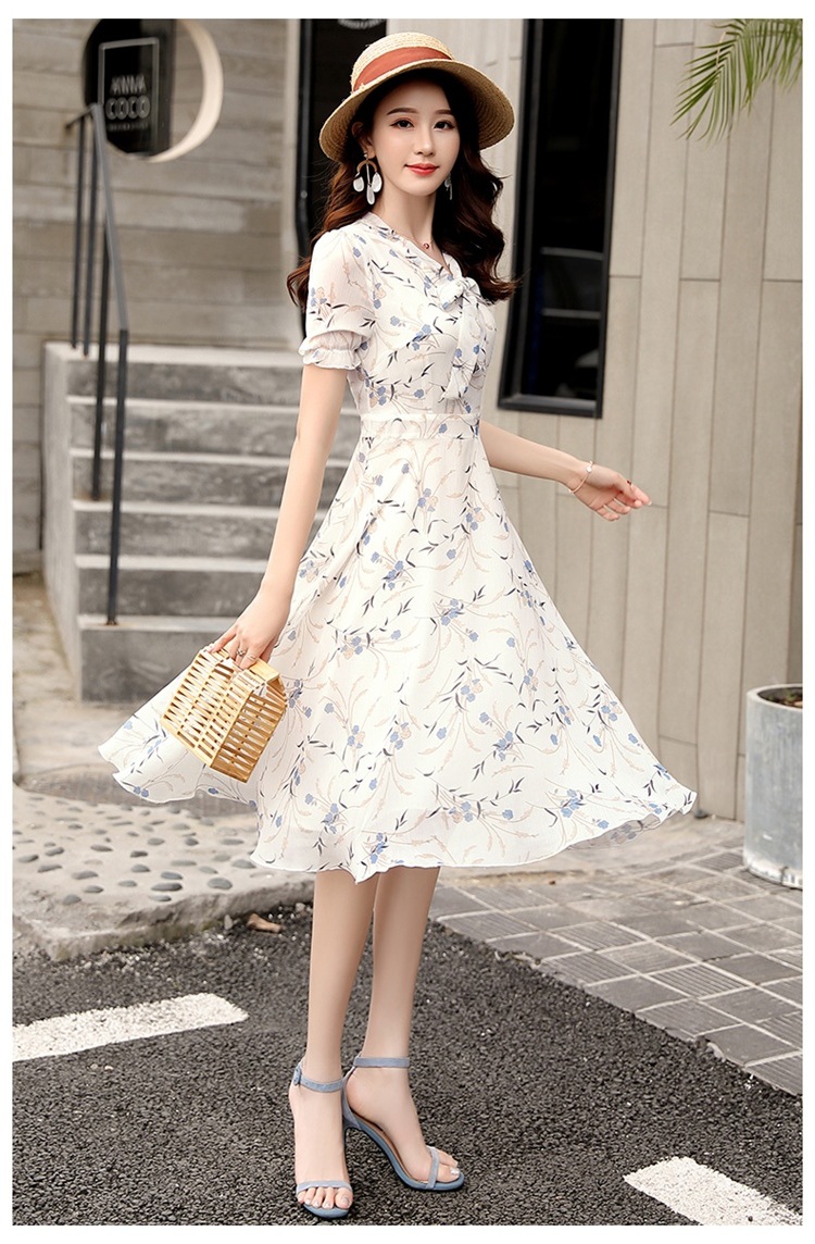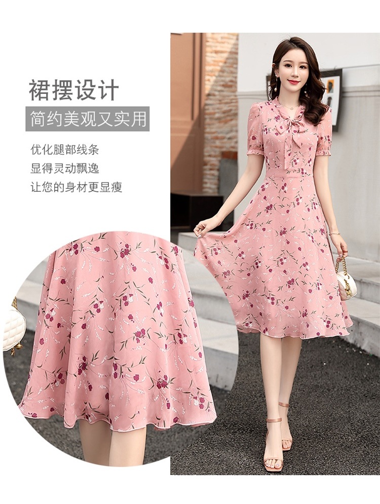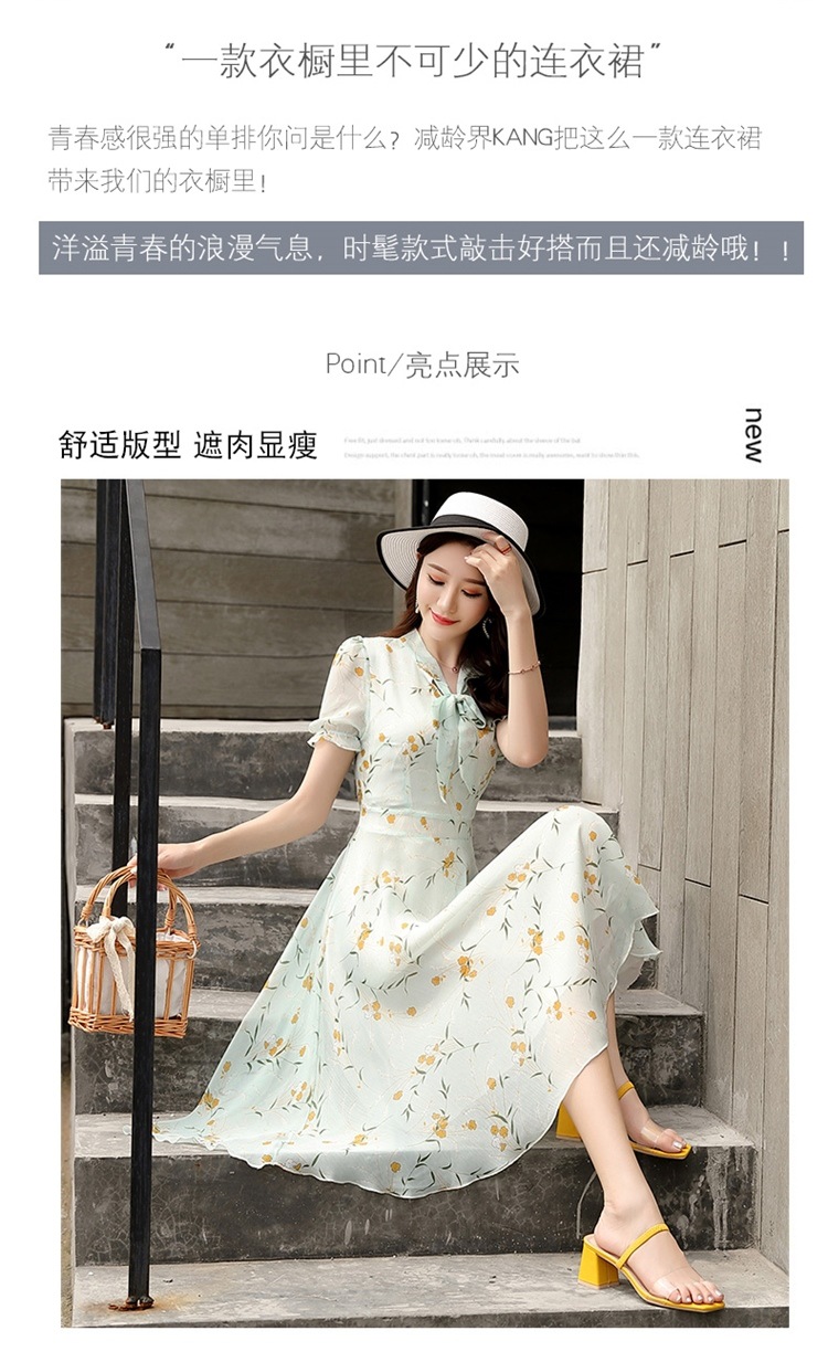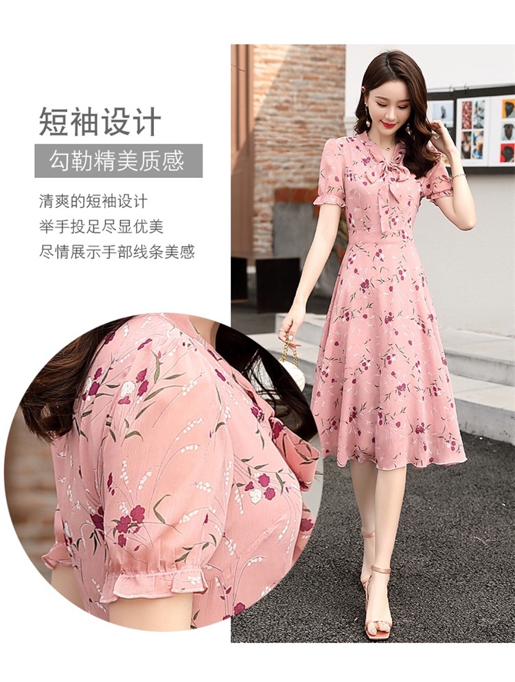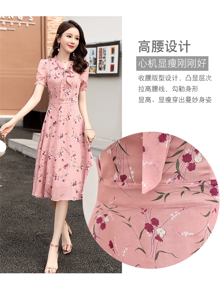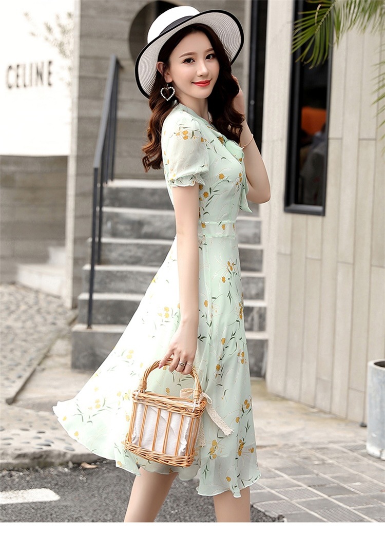 국경 간 대외 무역 작은 꽃 활 레이스 업 원피스 요정 여름 프랑스 틈새 반팔 인쇄 슬림 원피스