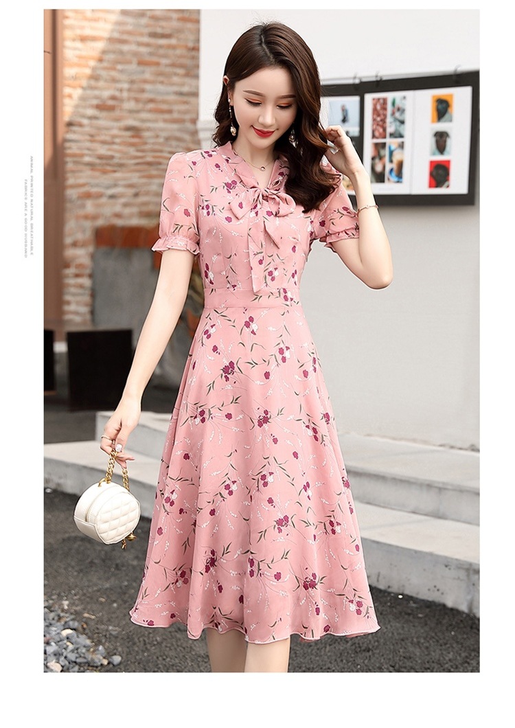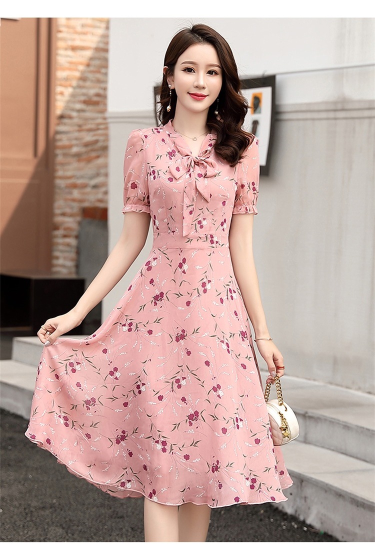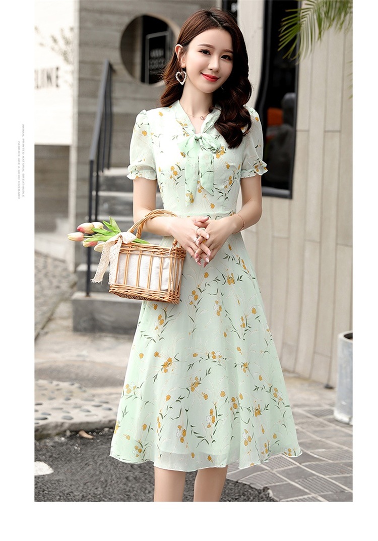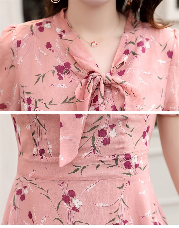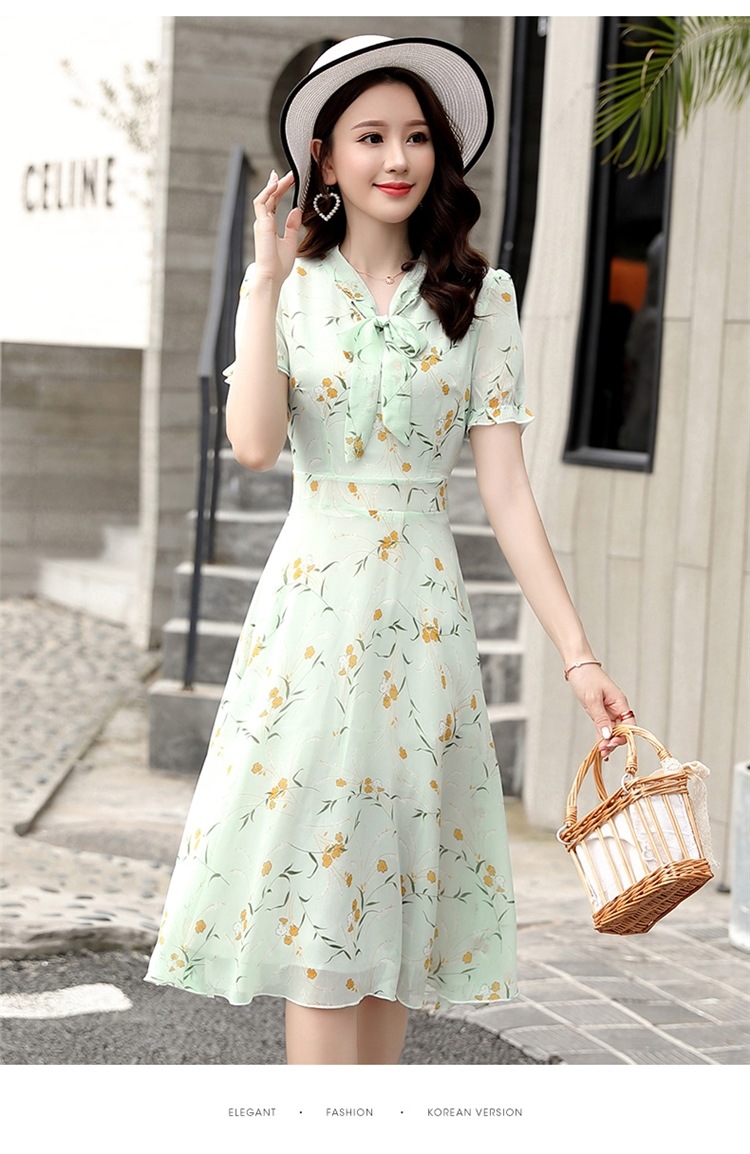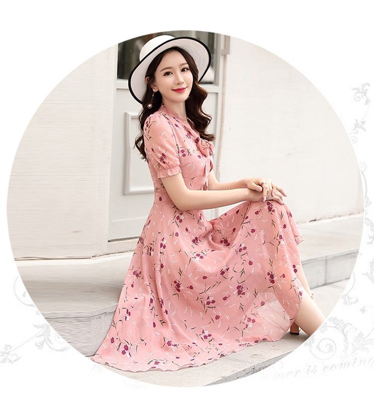 국경 간 대외 무역 작은 꽃 활 레이스 업 원피스 요정 여름 프랑스 틈새 반팔 인쇄 슬림 원피스
