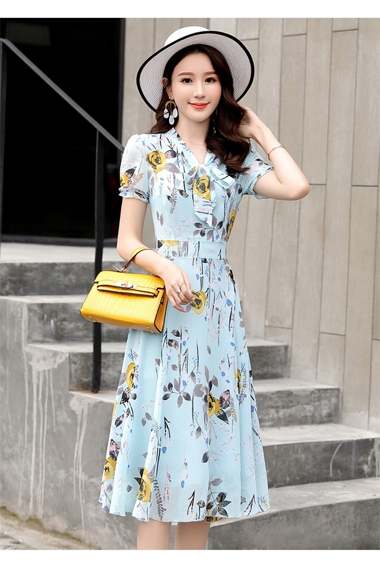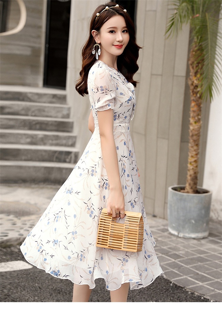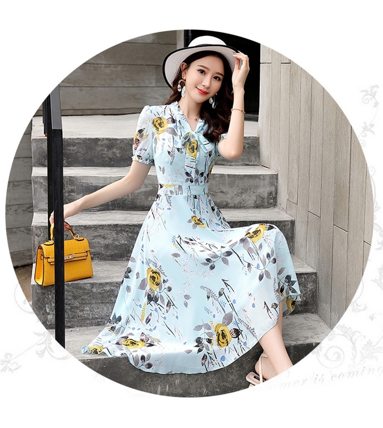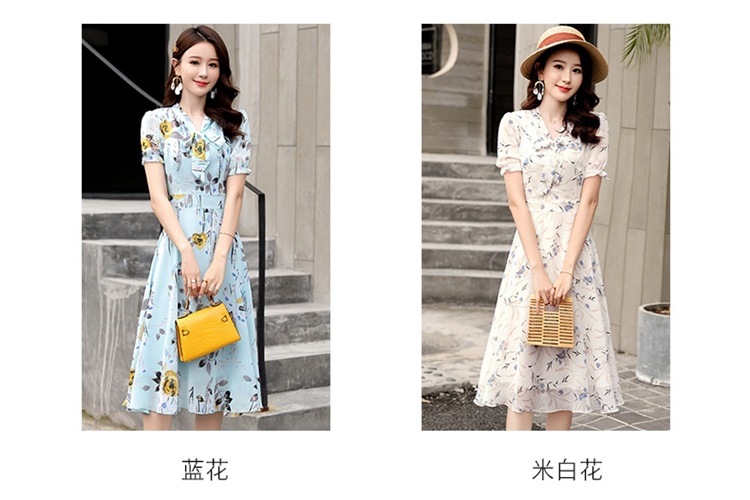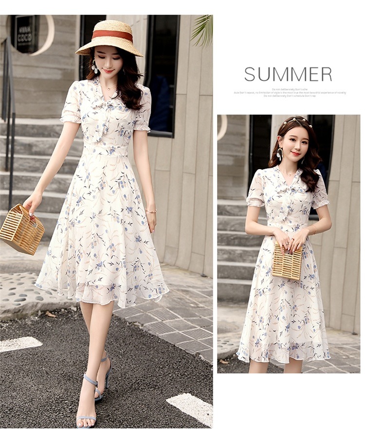 국경 간 대외 무역 작은 꽃 활 레이스 업 원피스 요정 여름 프랑스 틈새 반팔 인쇄 슬림 원피스스토어 가기